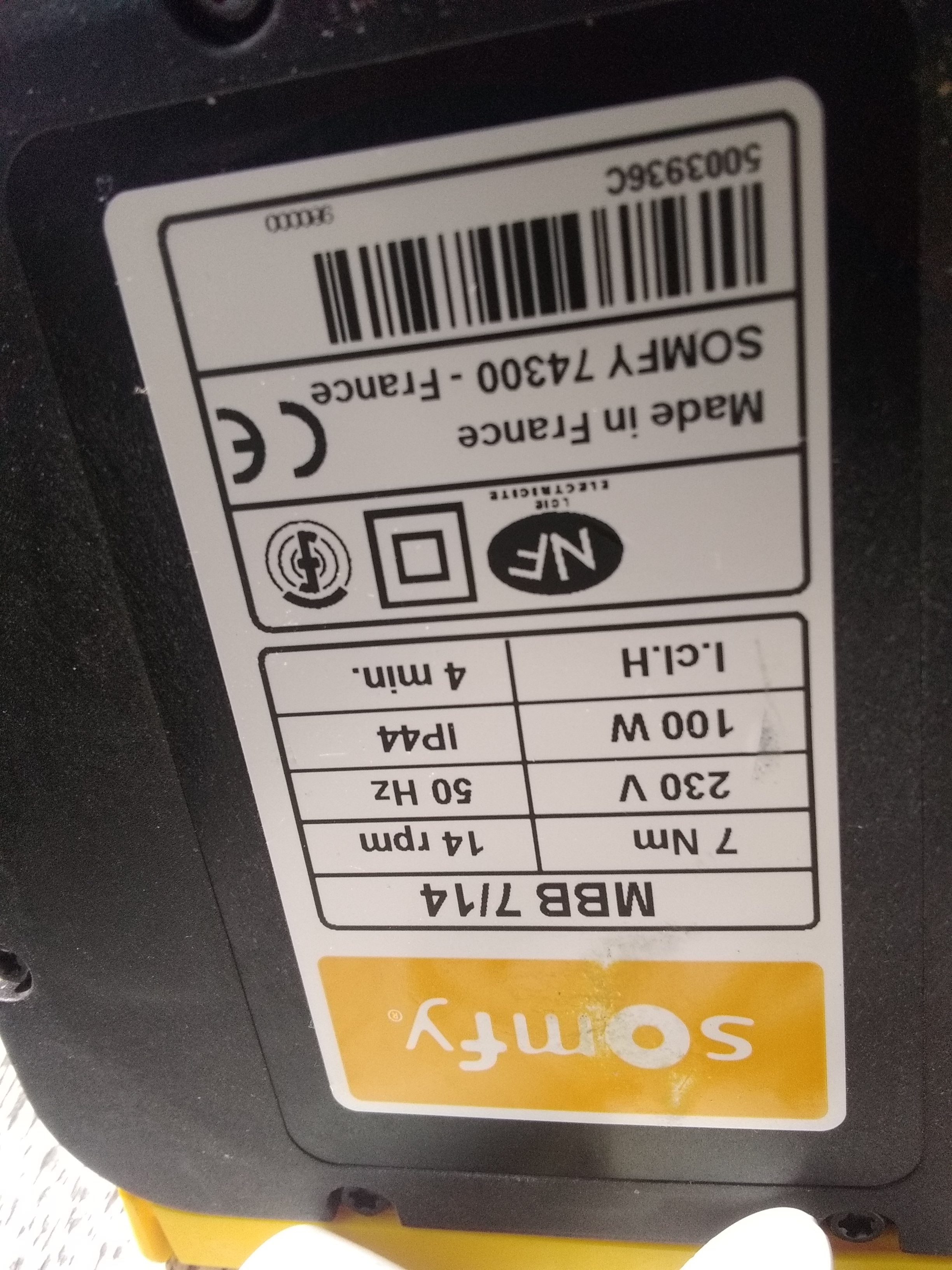 j'ai un ensemble moteur somfy MBB 7/14 en etat de bon fonctionement