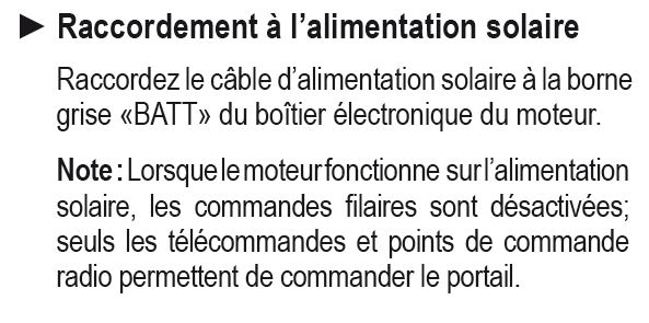 ""La batterie de secours assure le fonctionnement du portail en vitesse lente en cas de défaillance