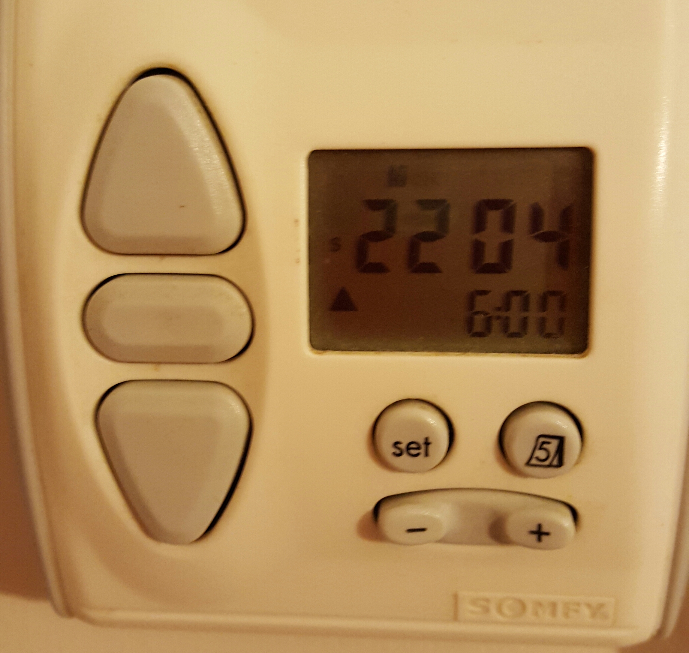 Horloge indique descente à 22h-> volets se ferment à 21h. Et ce, quelles que soient les programmes que nous choisissons. Les volets s'actionnent toujours à ces heures-ci malgré les modifications apportées.