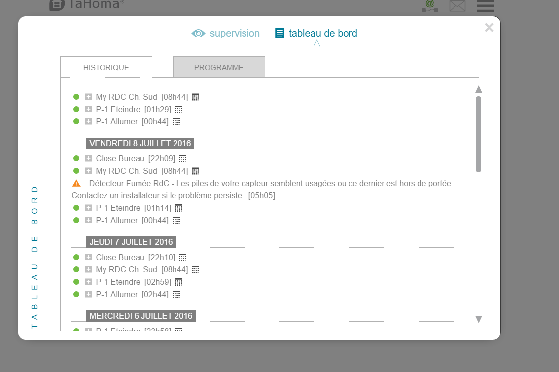 Je viens de réinitialiser et la Somfy Box et le détecteur de fumée, le système me précise que le détecteur de fumée est reconnu et lorsque je fais brûler des journaux sous le détecteur de fumée ..... hé surprise le scénario programmé s'est déclenché dès que l'alarme du détecteur s'est mise en route. Certes pas moins de 10 mails pour le même événements ne peut on pas limiter ? ou exceptionnellement passer par l'envoi d'un SMS uniquement pour ce cas.