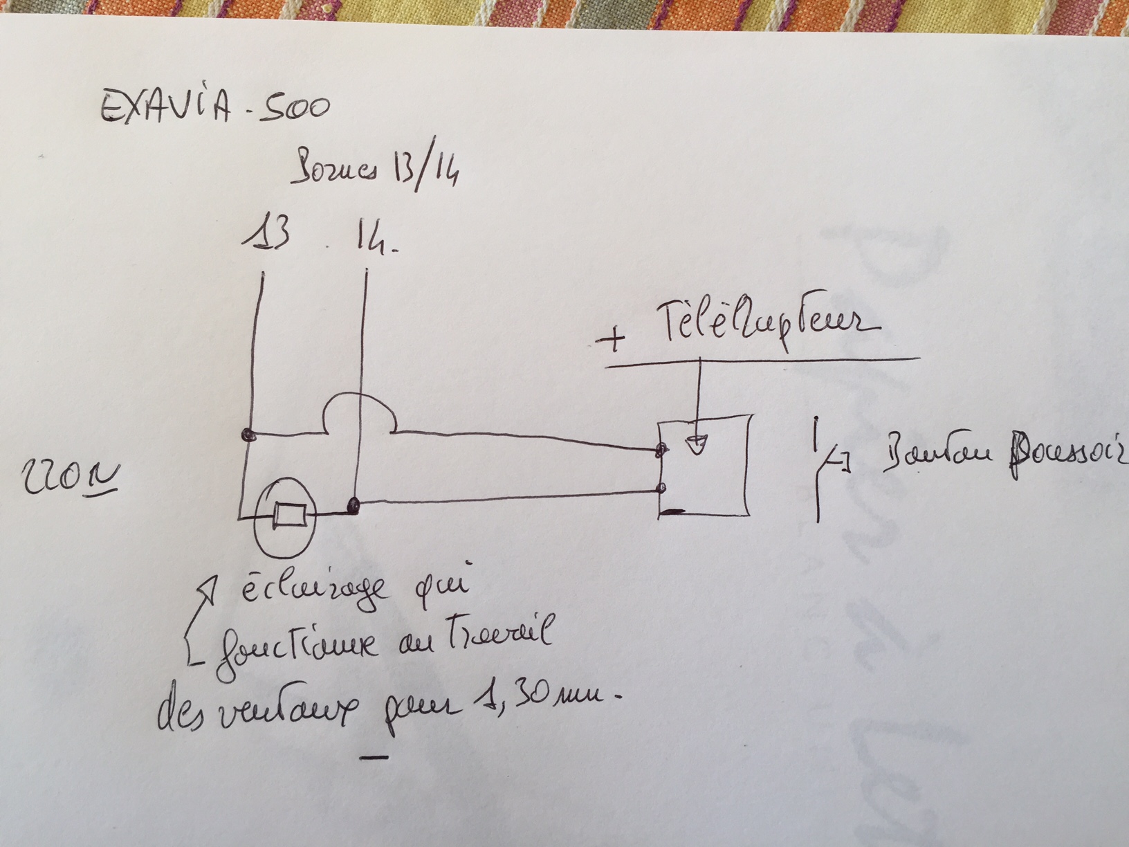 Mais dans le cas de la motorisation, les bornes 13 et 14 fournissent une tension 230 V qui risque en cas de câblage hasardeux de venir en conflit avec l'installation télérupteur et tout faire péter .