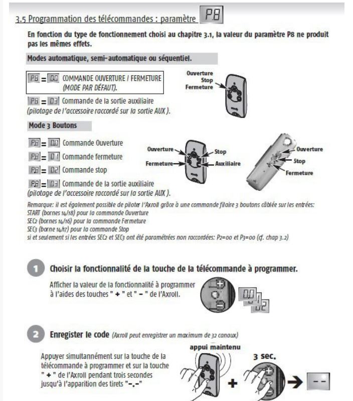 J'arrive à programmer seulement une télécommande en allant sur les paramètres P8 -> 01, mais quand je veux programmer la seconde télécommande je vais sur P8 -> 02, rien ne se passe.