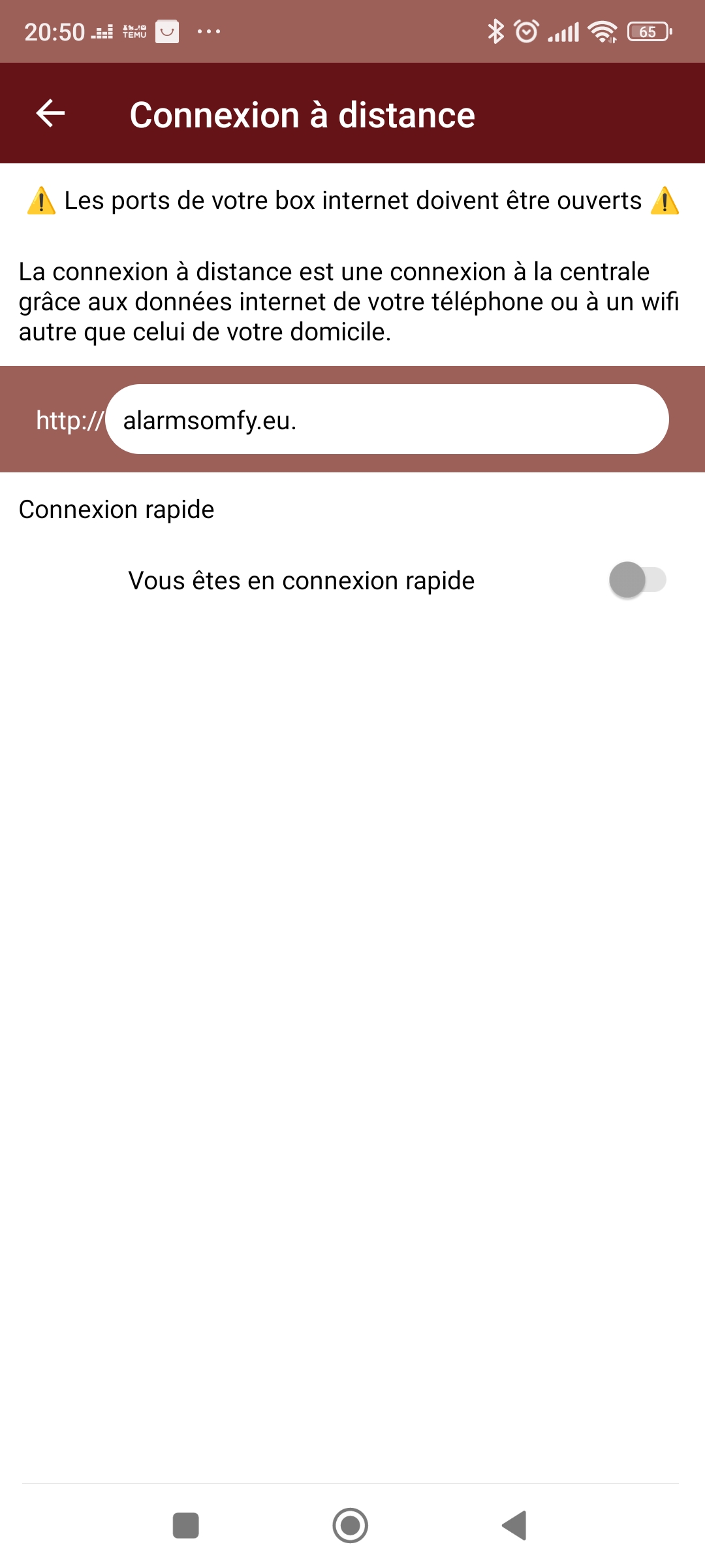 Je parviens à me connecter en local et grâce a l'application android mais je ne parviens pas à y accéder par l'intermédiaire de alarmesomfy.