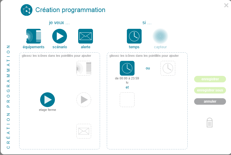 Afin d'utiliser la fonction SMART de votre Tahoma il est nécessaire de posséder au minimum un capteur. Sans cela, la fonction SMART ne sera pas fonctionnelle.