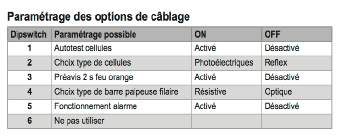 Avez-vous fait un essai en mettant les dispatchs 1 sur OFF et 2 sur ON sans auto test cellules photoelectriques