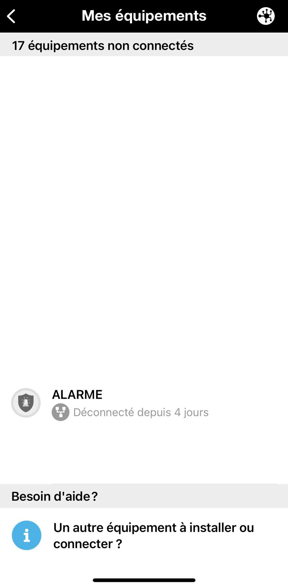 Dans la liste des éléments Wi-Fi l’alarme n’apparaît pas or elle est connecter en câble ethernet directement à la box,