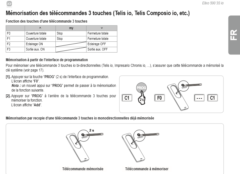 J'ai testé cette méthode en passant le moteur en mode "prog" mais ca n'a pas l'air de fonctionner... il ne détecte pas la télécommande.