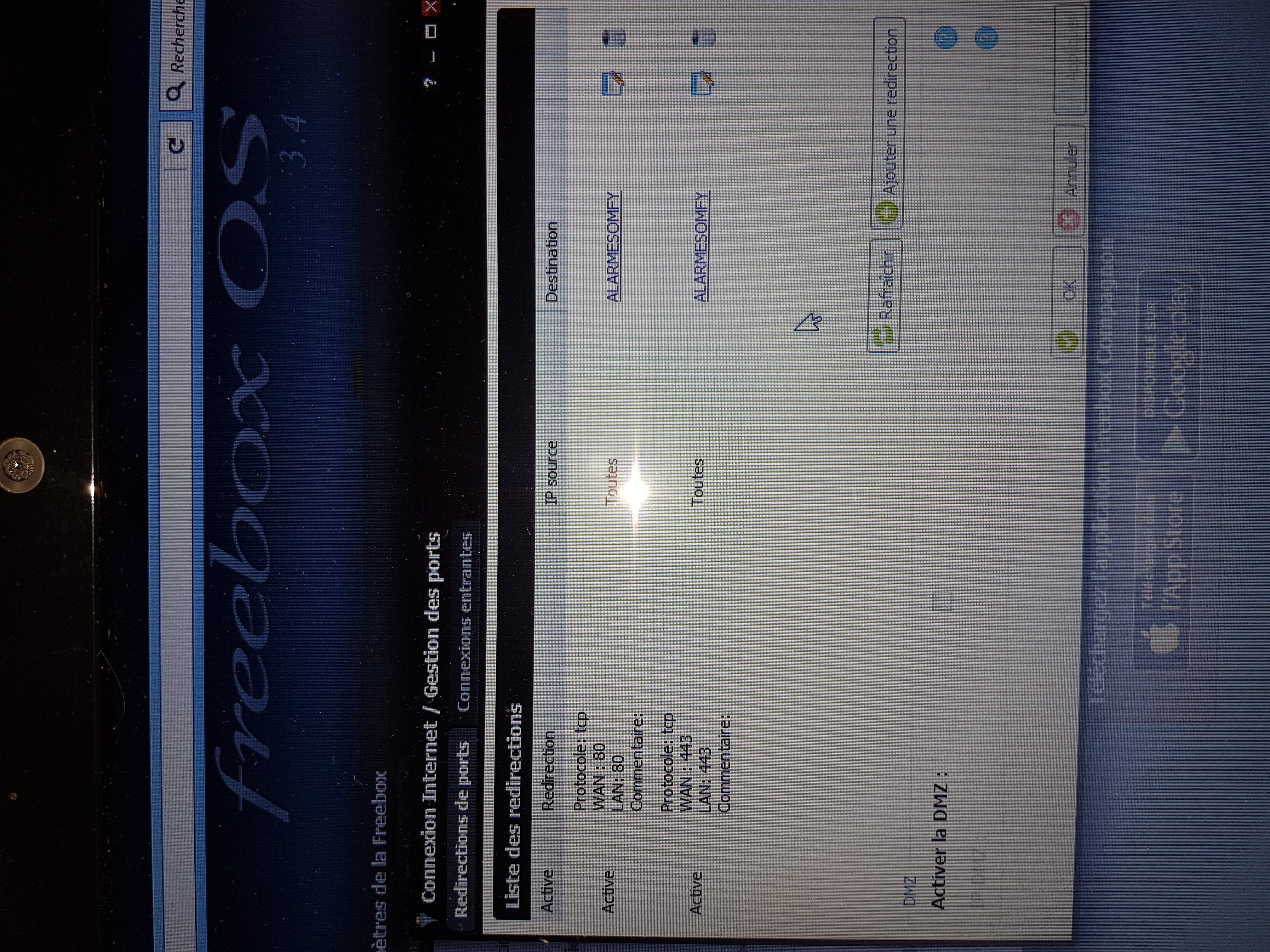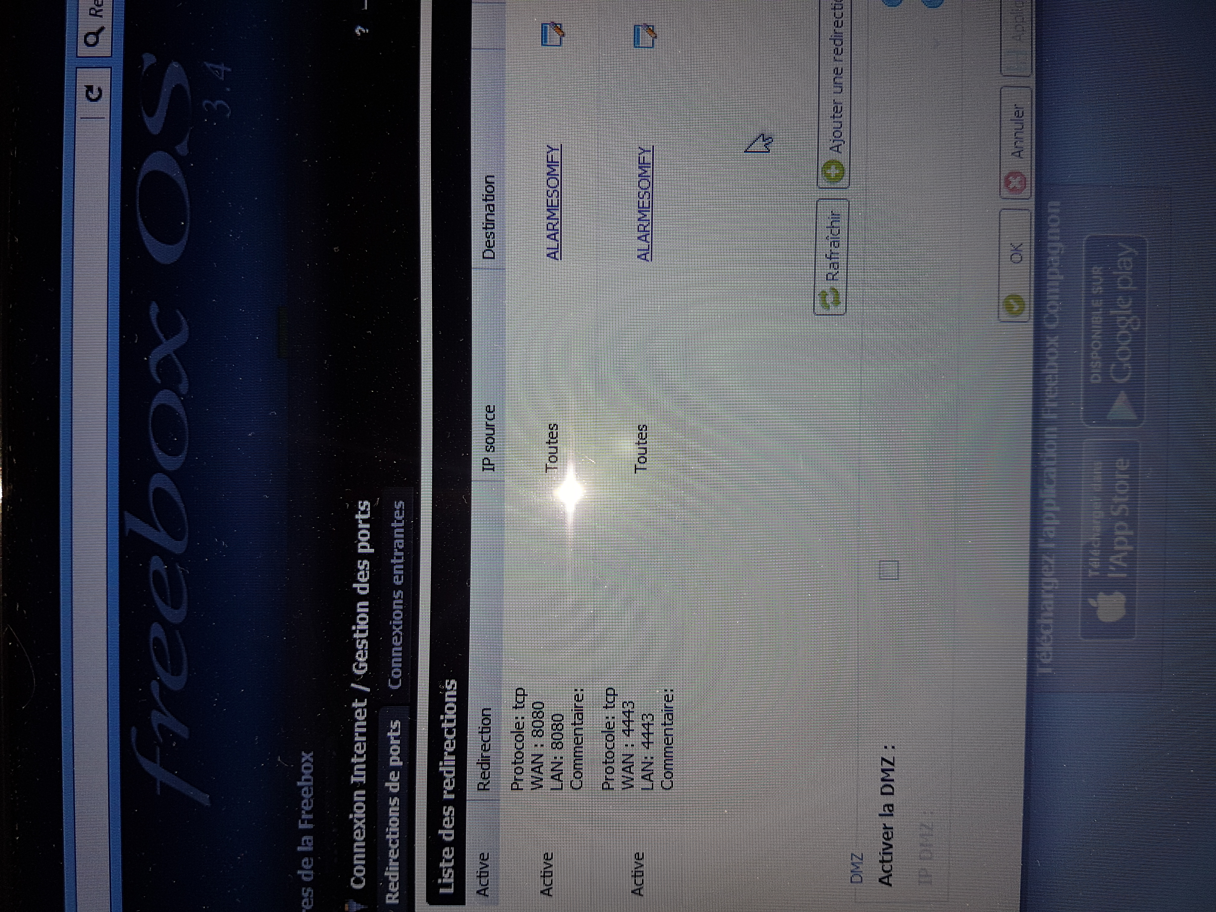 Ne reste plus que sur la Freebox, modifier l'accès à l'alarme. Pour ce faire, remettez les ports 80 et 443 pour l'alarme et les ports 8080 et 4443 pour l'accès à distance à la Freebox.