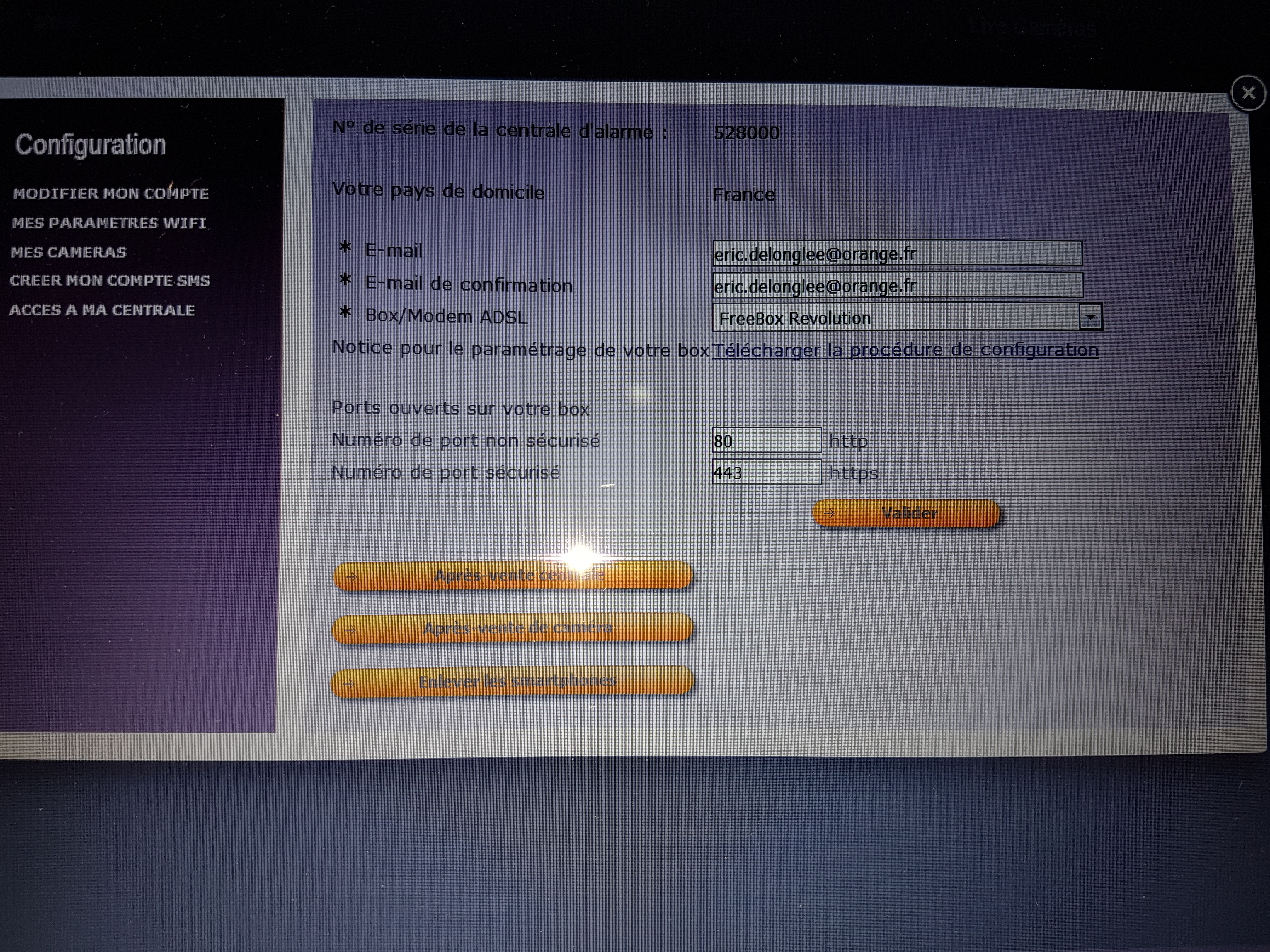 Par contre vous pouvez essayer de faire le contraire. C'est à dire, remettre les valeurs par défaut sur votre centrale (80 et 443), refaire l'ouverture de ces ports redirigés vers la centrale et modifier l'ouverture des ports d'accès à la Freebox par les ports 8080 et 4443.