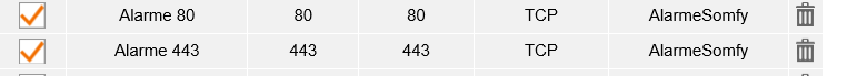 je viens de paramétrer les ports sur la box le 443 et le 80. avec l'application sur le smartphone je peux accéder à ma box via le wifi mais depuis le réseau GSM impossible sur aucun des 2 ports. Dans l'administration de la centrale, dans le choix du type de box je ne trouve pas ce modèle, pouvez vous me dire quel type choisir ? actuellement je suis sur le type livebox V2. dans la box dans l'onglet NAT dans équipement j'ai pc-65 et non l'adresse IP de ma centrale , est normale ? Par contre dans DNS sur la ligne Pc 65 je retrouve bien mon IP de ma centrale.