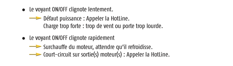 clignotte rapidement donc probleme sortie moteur?mais le moteur fonctionne pour ouvrir les 2 ventaux et pas pour fermer un des 2 ventaux