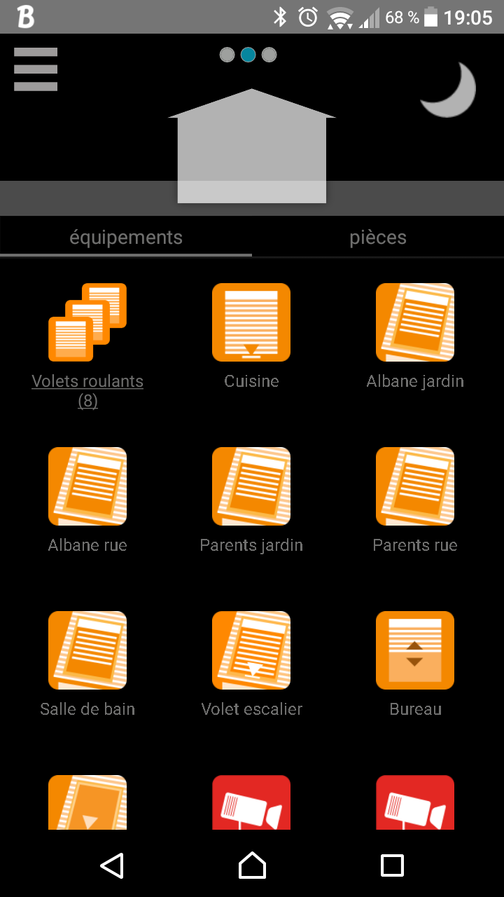 app android 6.0 (3.8.1#90) :tous les volets sont en réalité fermé, et l'on peut voir qu'il y a une flèche sur le volet escalier.