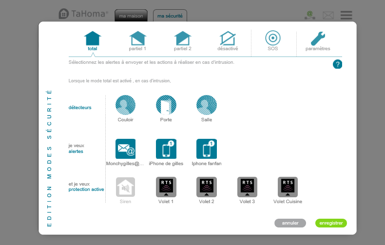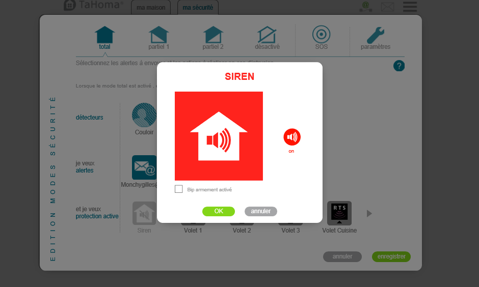 L'ajout des équipements fonctionnent correctement mais il est impossible par exemple d'activer la sirène sur le partiel, total ou autre, sauvegarde impossible ....