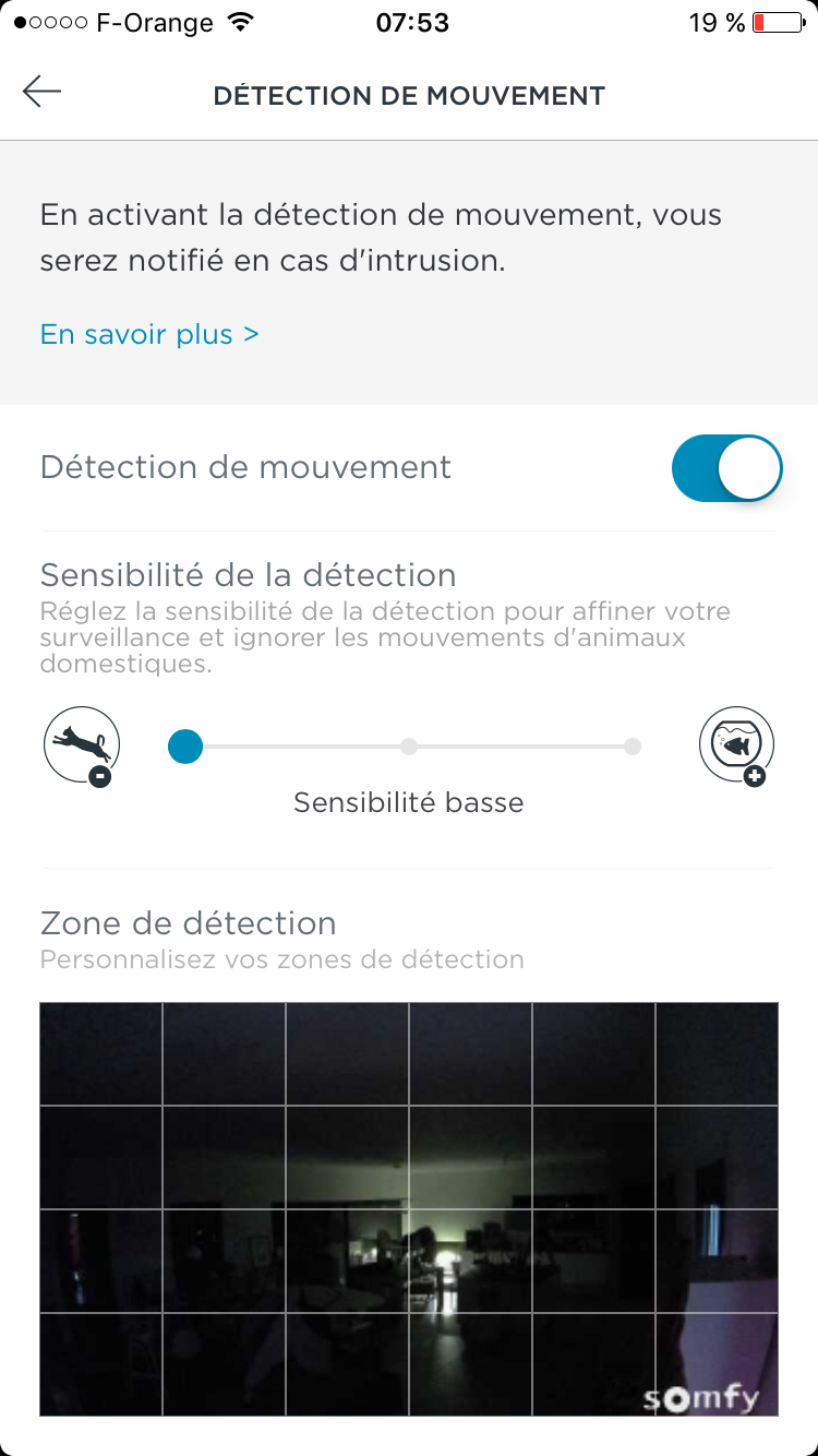 Je vous informe que nous avons baissé la sensibilité de détection de l'auto-protection de votre Somfy One qui était en hyper-sensibilité, vous ne devriez plus aucun problème de déplacement intempestifs.
