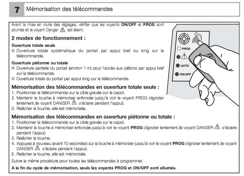 Mais quid de la programmation du bouton droit pour l'ouverture piétonne, non mentionnée dans la documentation et introuvable sur internet (jusqu'ici ...).