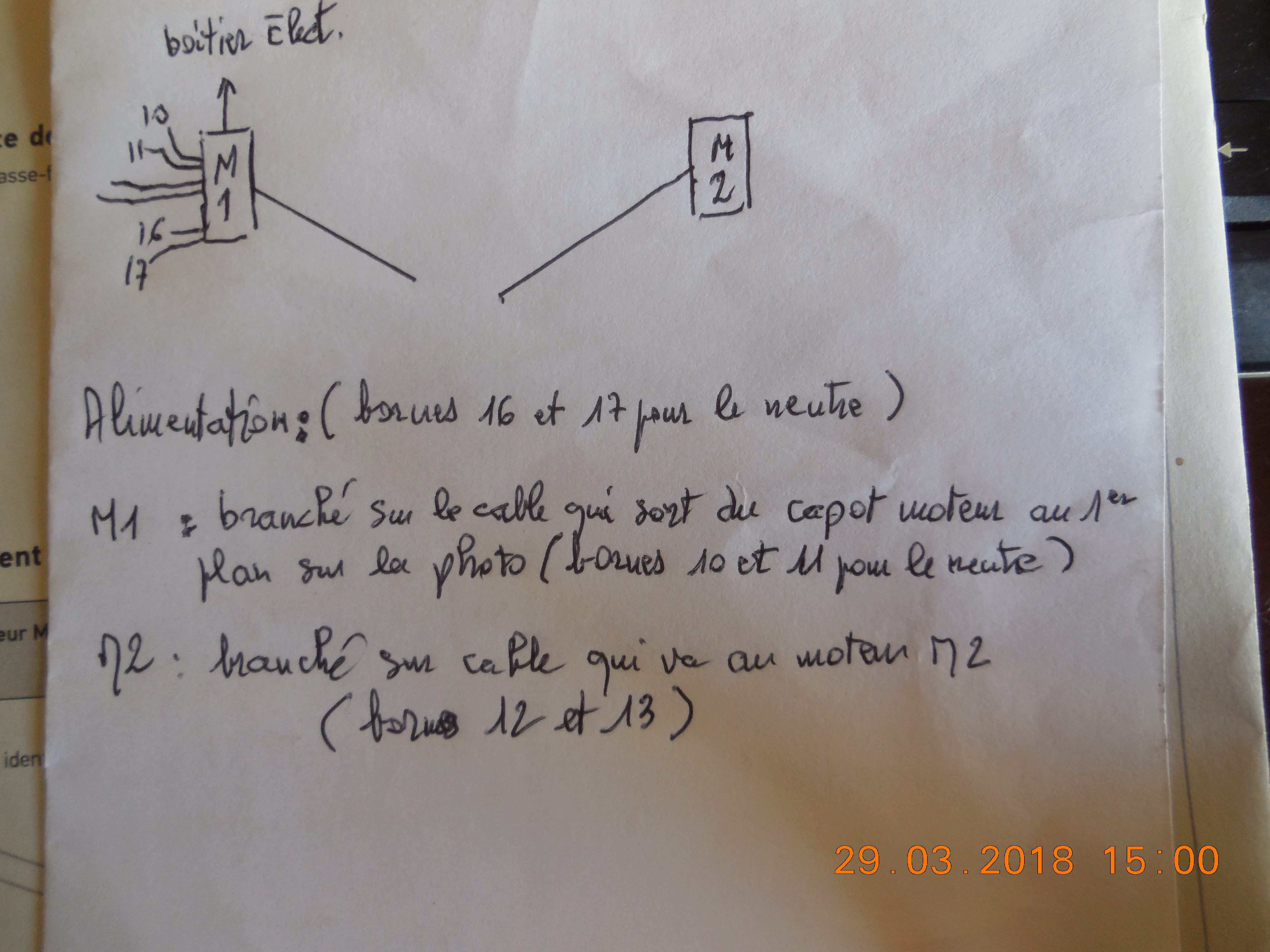Les 2 moteurs fonctionnent puisque ce matin , en inversant les branchements entre les bornes M1 et M2 , c'est soit l'un soit l'autre qui fonctionne....?