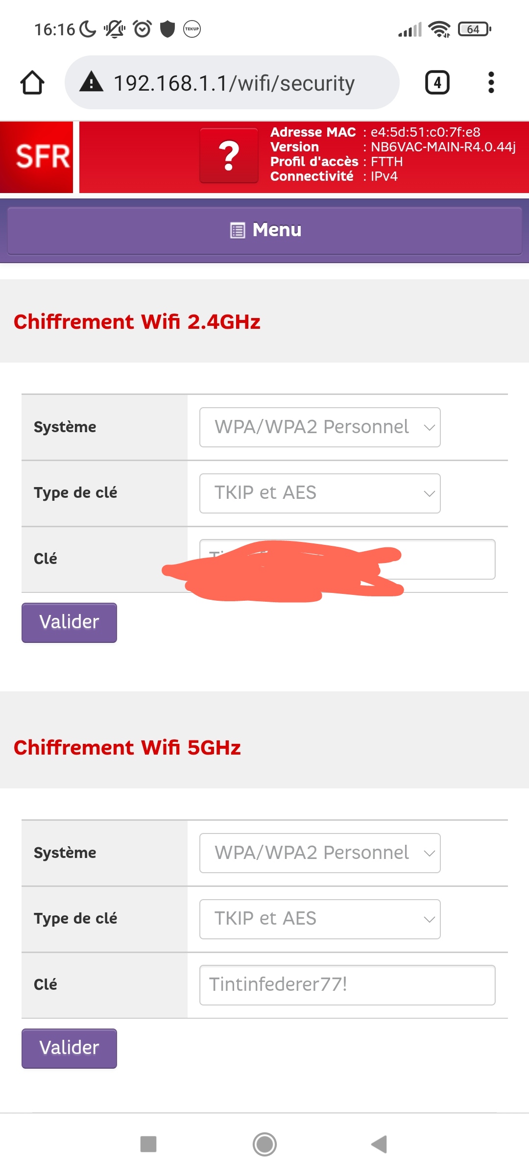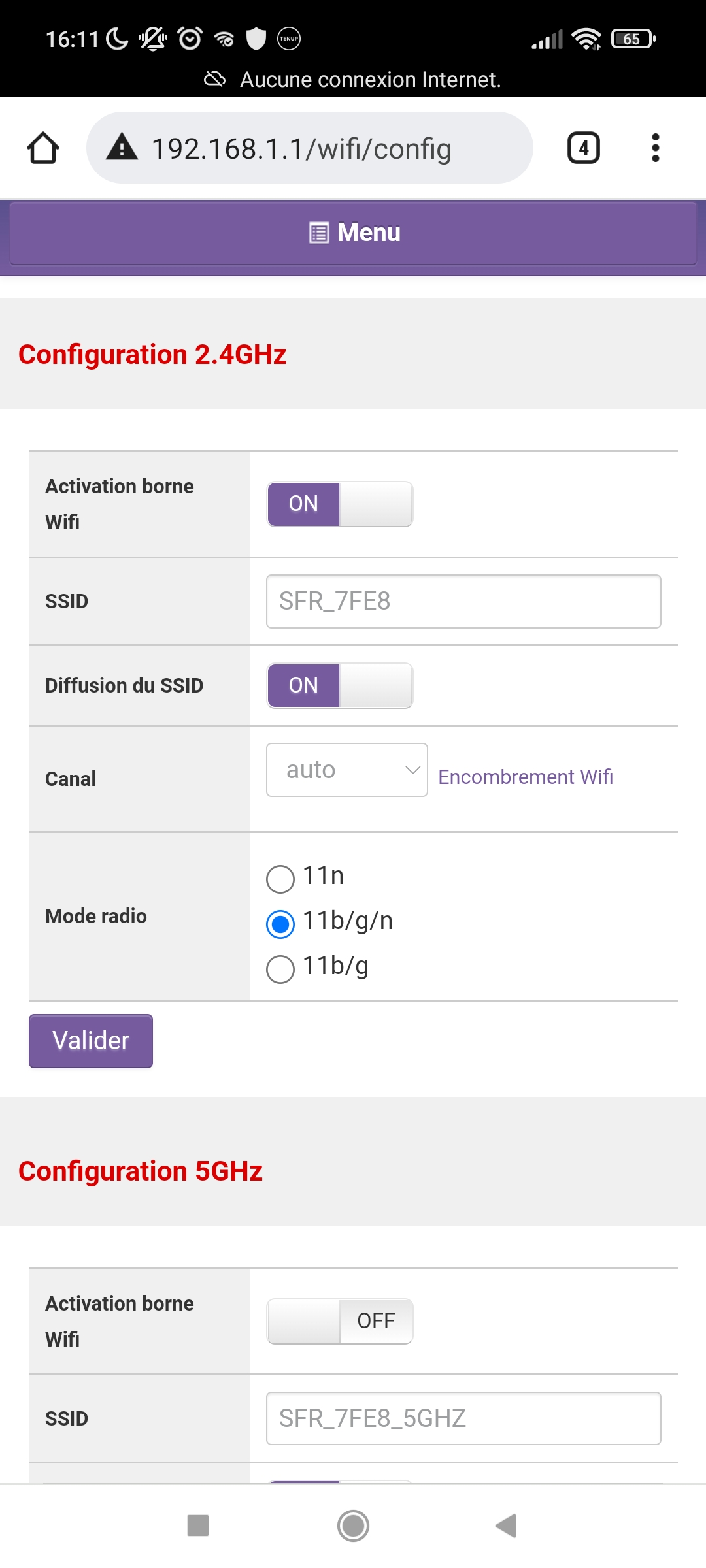 Aucun autre terminal sur le wifi que le link et l'android d'installation.