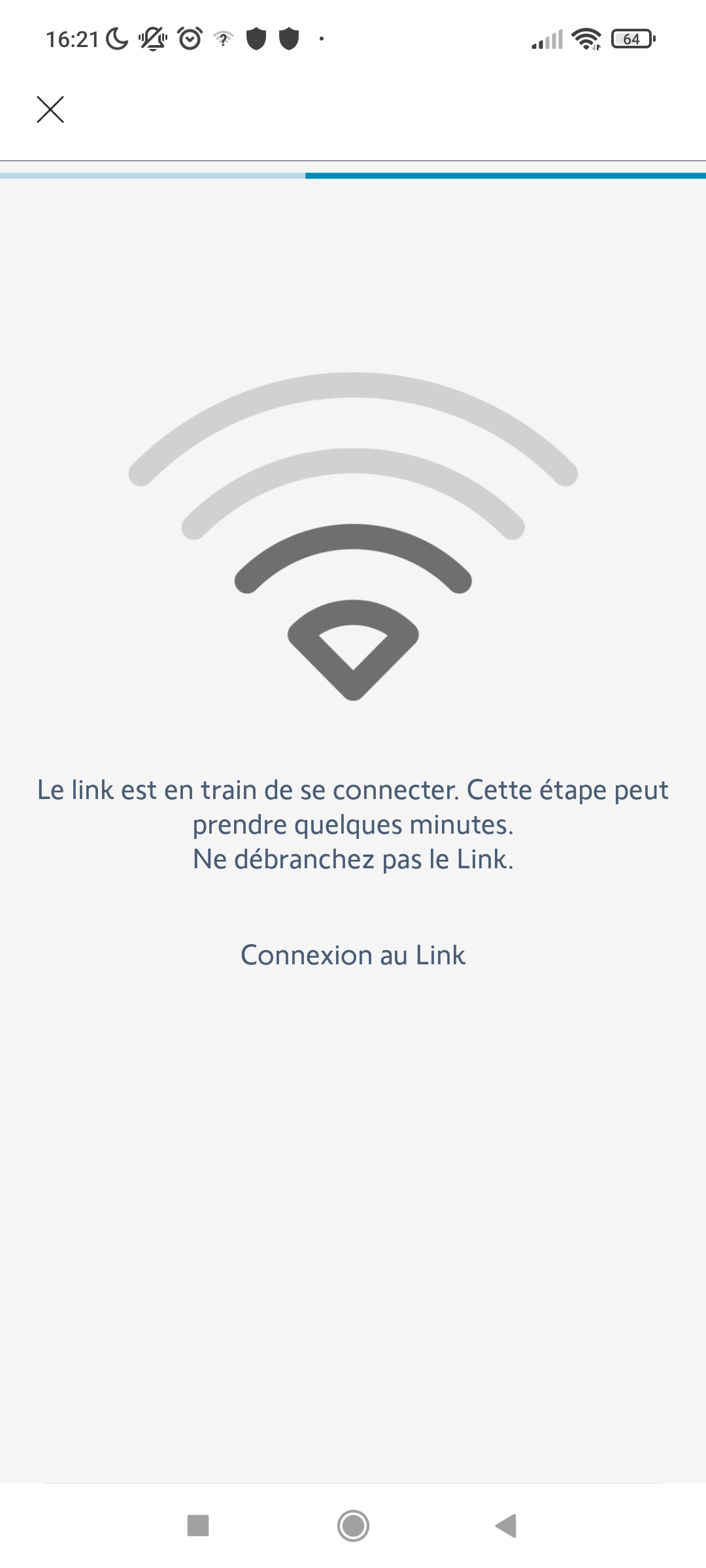 Mon Link semble bien se connecter via un partage de connexion (LED Fixe), cependant je ne comprends pas une etape: lorsque le telephone fini d'envoyer les parametres Wifi au link et que celui ci s'y déconnecte, le téléphone n'est plus connecté a aucun wifi ni aux données cellulaires, normal ? comment alors se connecter au Cloud Somfy ? je dois me reconnecter au wifi initial ?