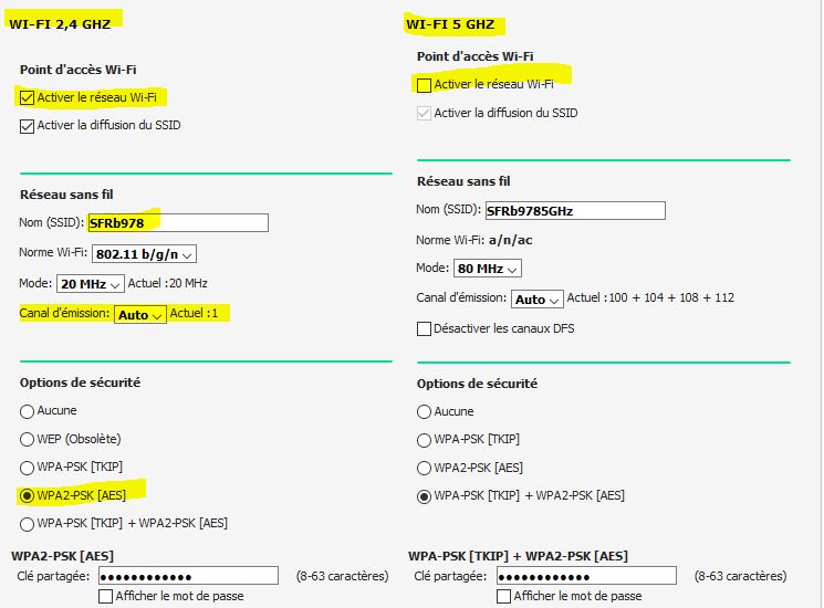 Wifi 2,4GHZ clé sécurité WPA2-PSK [AES]