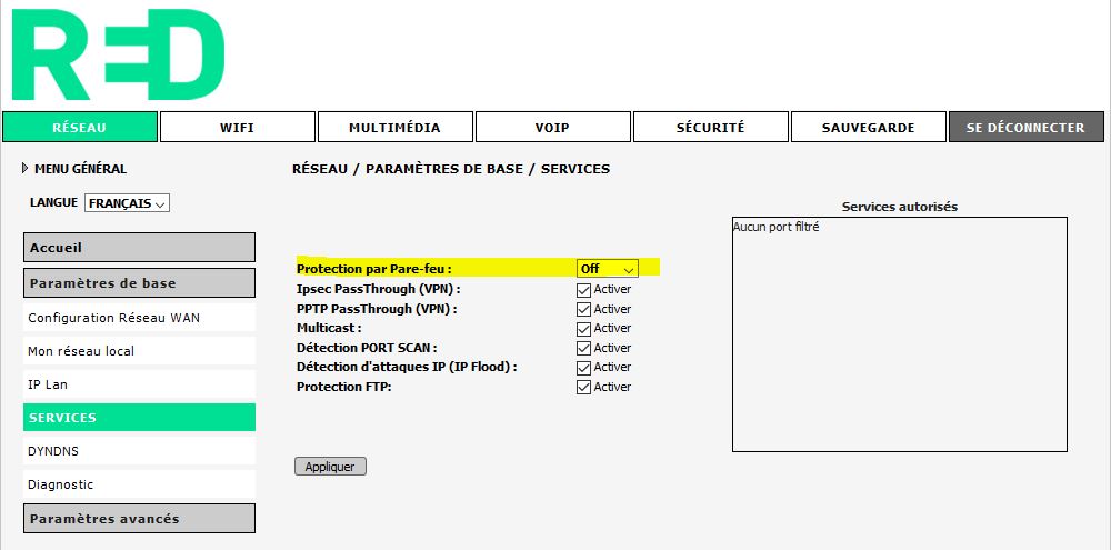 5) Pare-feu désactivé --> voir Pare-feu.JPG