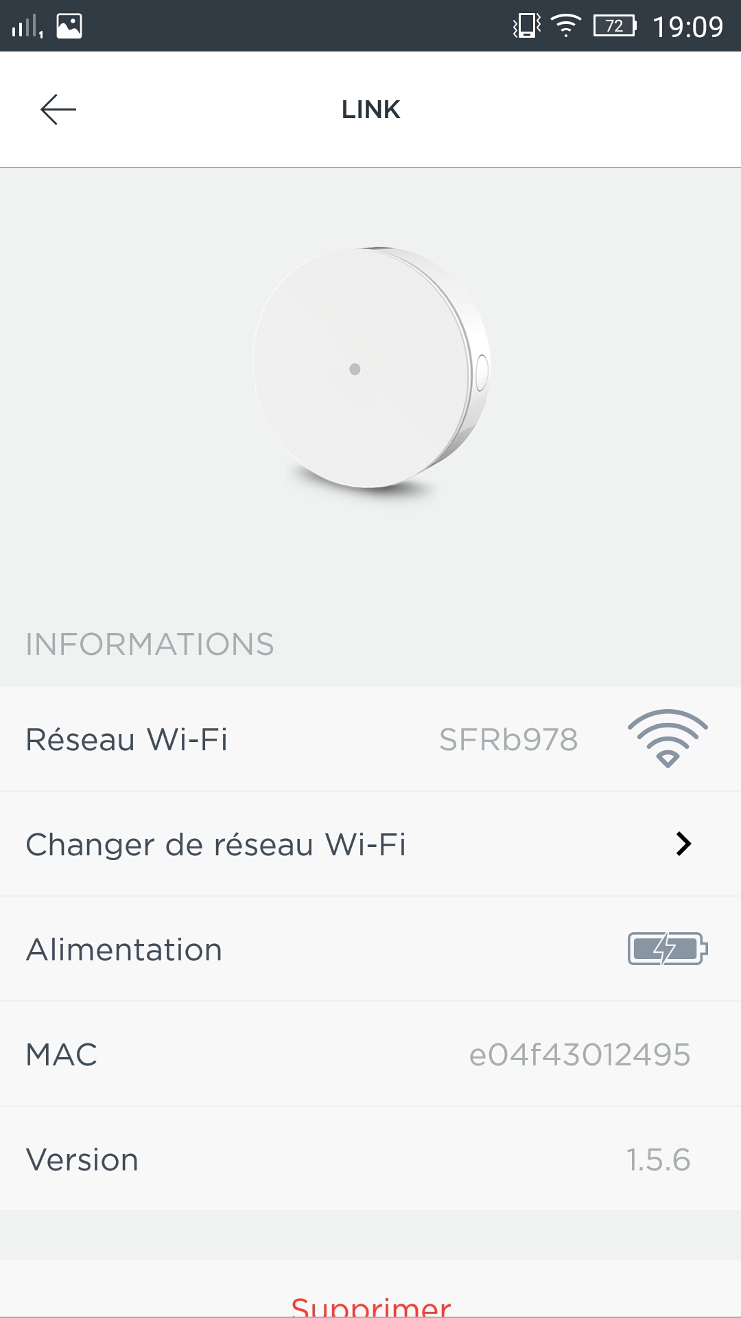 Dans ce cadre, merci de suivre la procédure "Changer de réseau WiFi" disponible dans les réglages du Link pour le reconnecter au réseau. Pour information, la bonne version du Link ce jour est la 2.1.2.