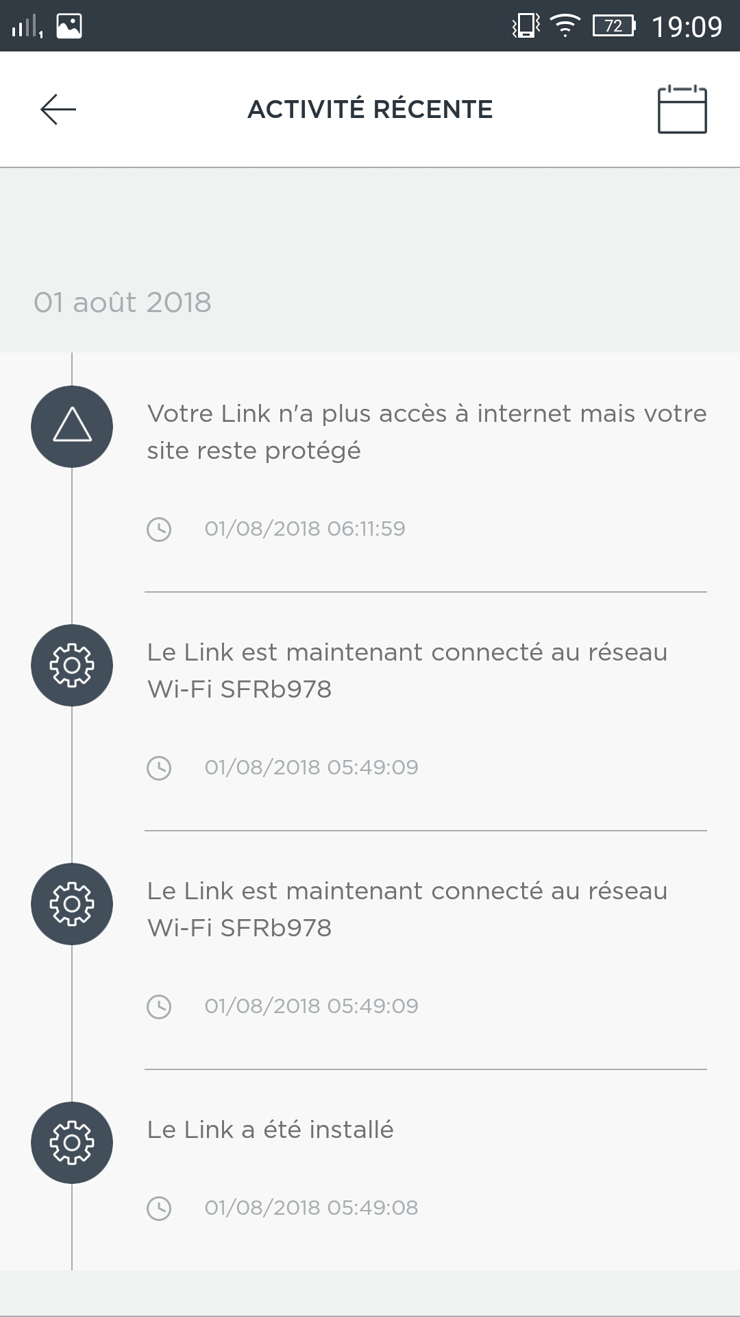 Depuis j'ai renvoyé le link et on m'en envoyé un neuf ... et cela ne fonctionne toujours pas. Cela fait bientôt un an que j'ai acheté le kik home alarm de somfy et j'ai vraiment la sensation d'avoir perdu 600€.