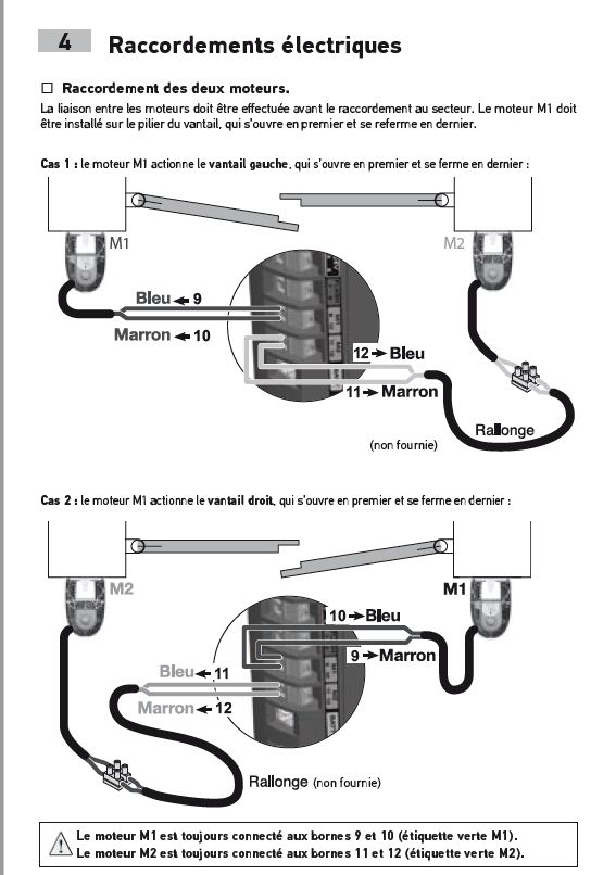 Au premier appui sur la télécommande M1 doit s'ouvrir le premier, en suite M2.