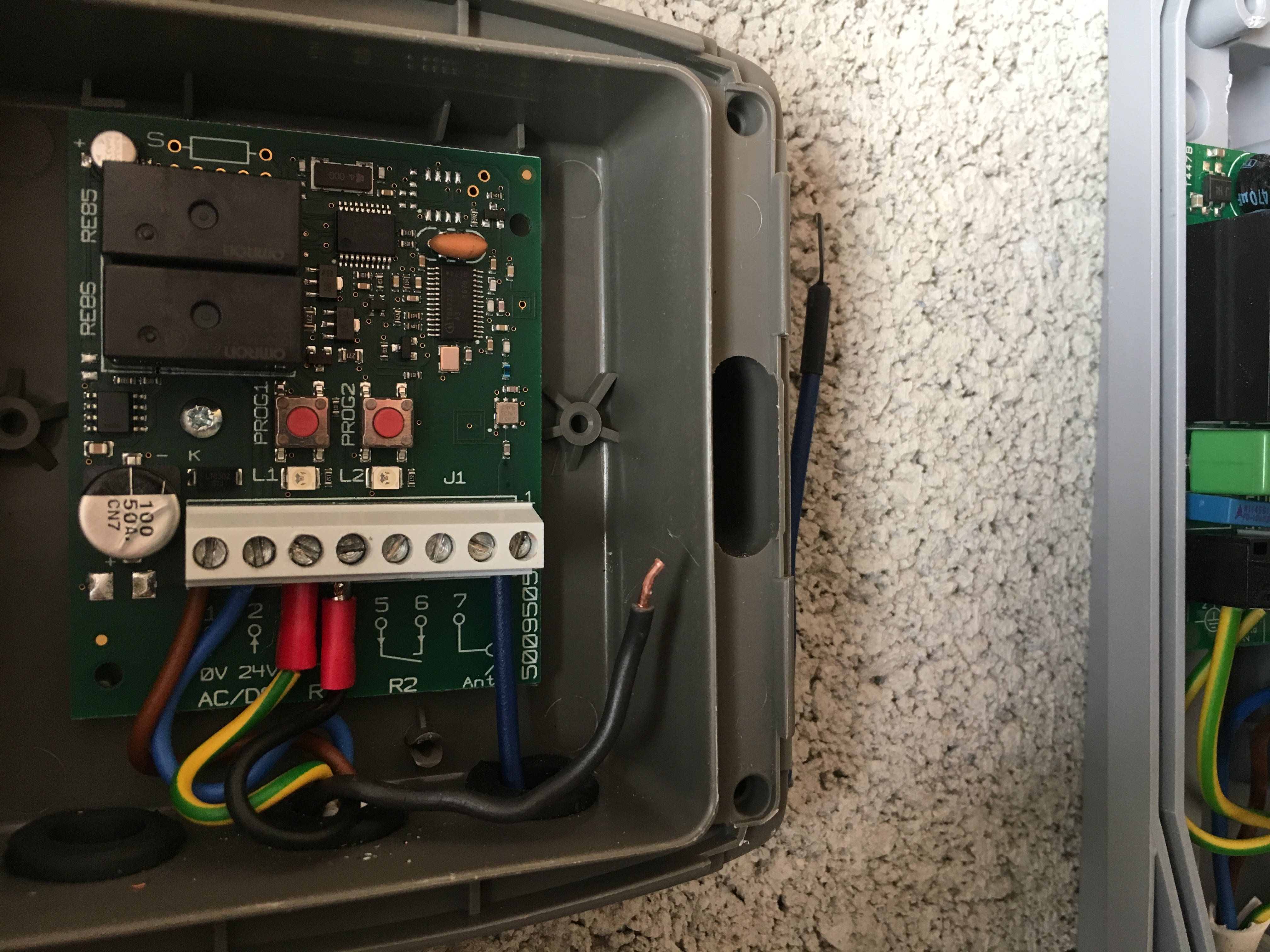 Bonjour voilà dès photo de la porte de garage avec barre palpeuse plus relais