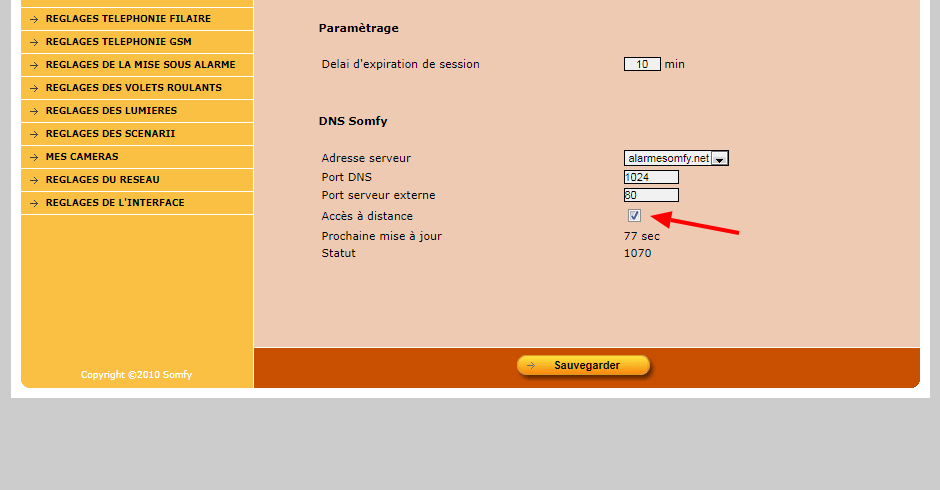 Je me connecter bien en local via le wifi sur PC ou avec l'appli mobile, en mode utilisateur ou admin. Par contre l'accés à distance via le lien https://xxxxxxxx.alarmesomfy.net/ ne fonctionne pas, impossible de m'authentifier. J'ai bien les ports sécurisés et non sécurisés ouvert dans la config de la box, ainsi qu'une adresse ip statique pour l'alarme qui n'a pas changé. Pour info j'avais changé de fournisseur internet en Janvier et fait la re configuration avec succés.