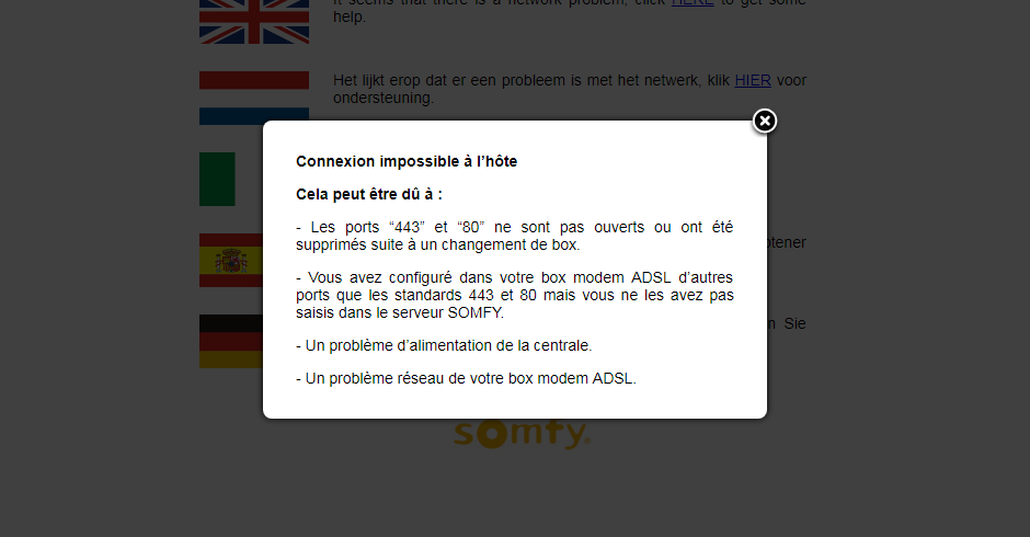 Pour ce qui est du Web voici ce que cela donne en http et https : voir la capture écran. Je dois dire que le message de Somfy n'est pas éclairant car les ports sont ouverts et cela fonctionnait ...