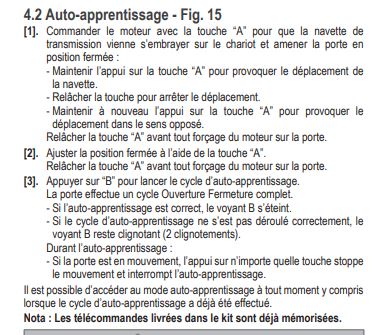 • Si le cycle d’auto-apprentissage ne s’est pas déroulé correctement, le voyant B clignote 2 fois en continu.