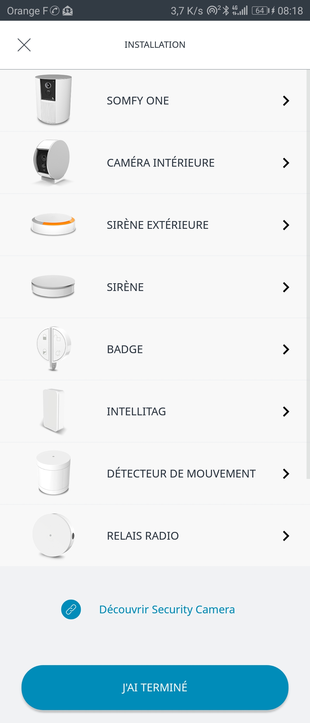 Cette application est uniquement compatible avec les Somfy One et One+, la Security Camera, la camera Indoor et le système Home Alarm.