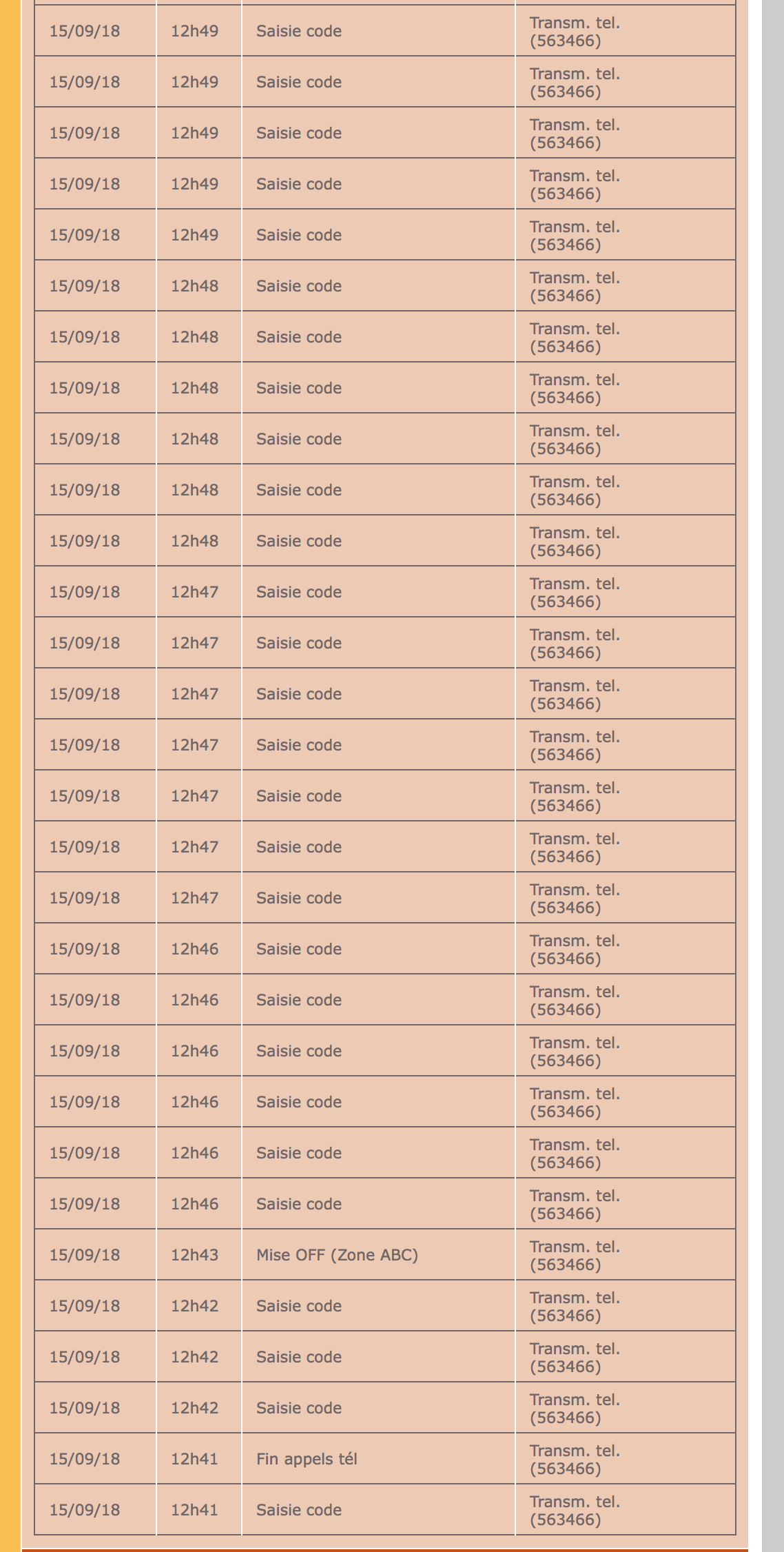 Une alarme Protexiom 600 qui fonctionne plutôt très bien depuis plusieurs années, mais depuis plusieurs jours, je vois apparaître des "Saisie de code" en continu dans la "Liste des événements" de mon interface internet alors que je ne fais rien !?