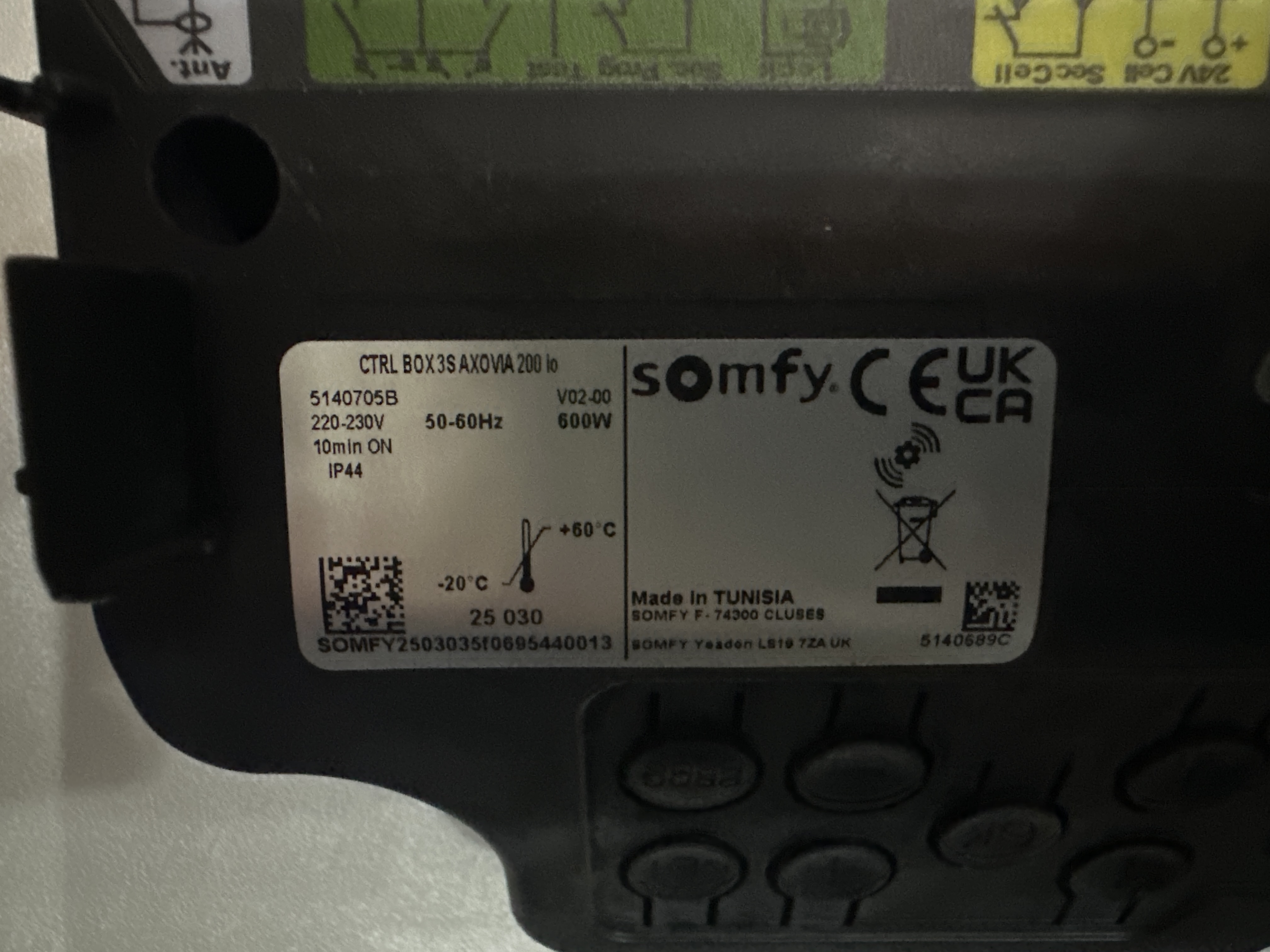 Et aussi une photo nette de l'étiquette sur le boîtier électronique.
