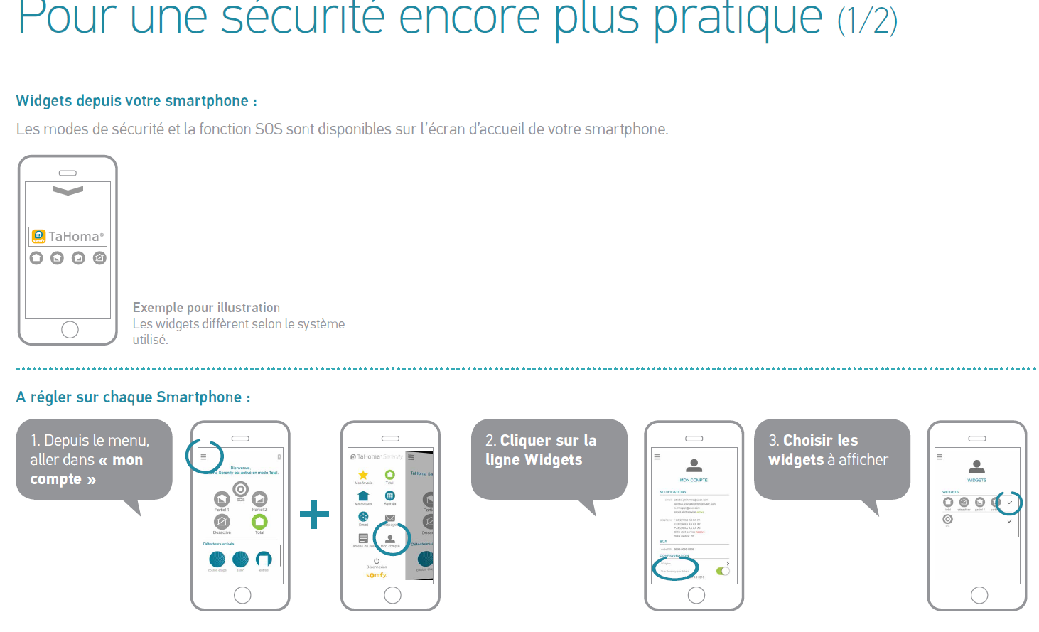 Chapitre : "pour une sécurité encore plus pratique" Wedgets depuis Smartphone. Comment faire SVP ? Merci .