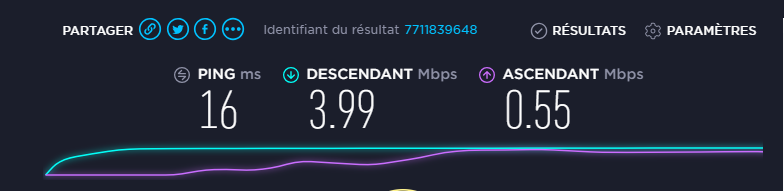 Votre débit est effectivement bas. Par contre je ne comprends le ping de 16 ms avec un débit comme le votre !
