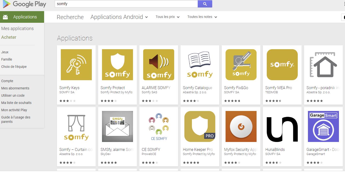 Sur playstore en tapant "tahoma by somfy" sont proposées dans l'ordre les applis suivantes :