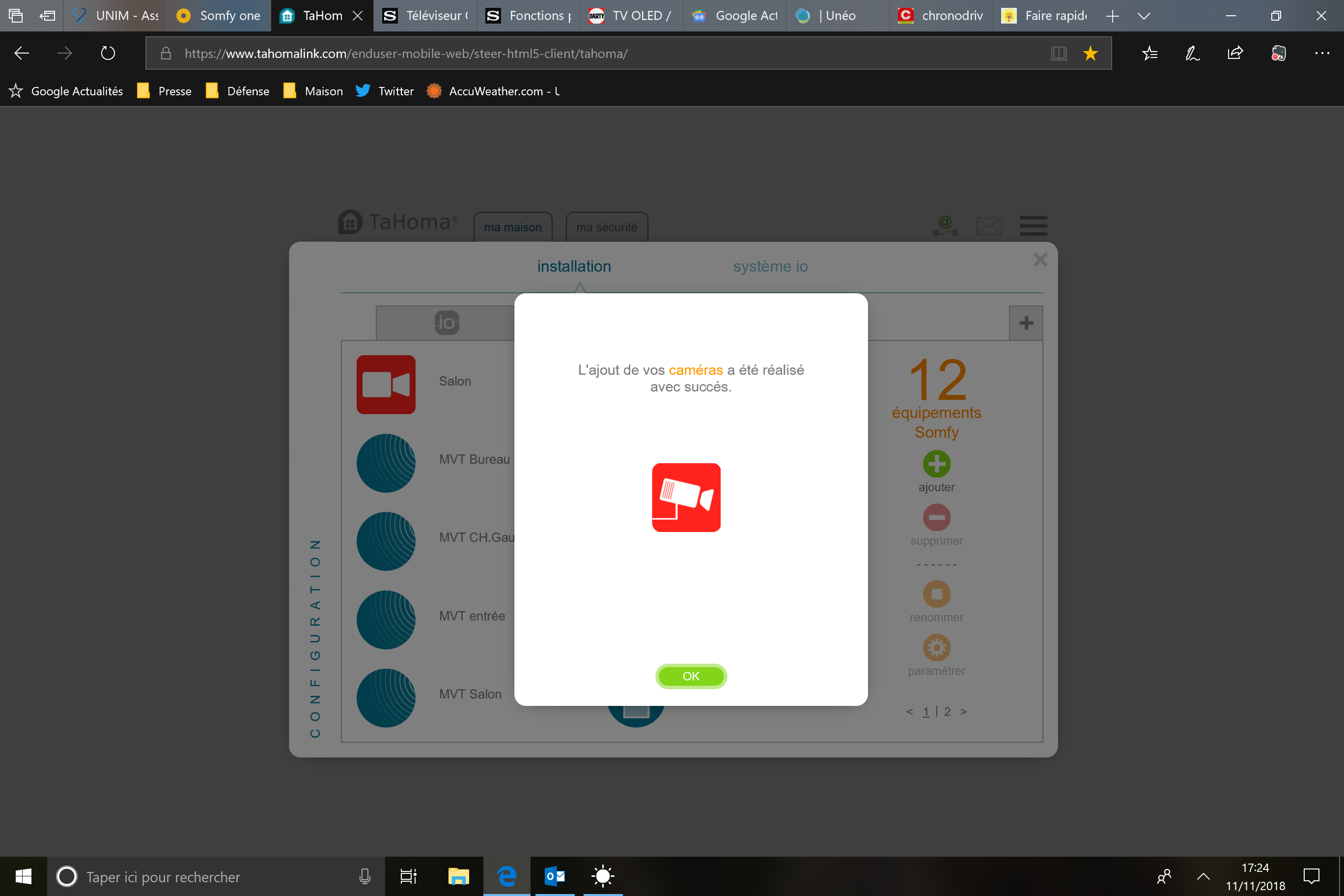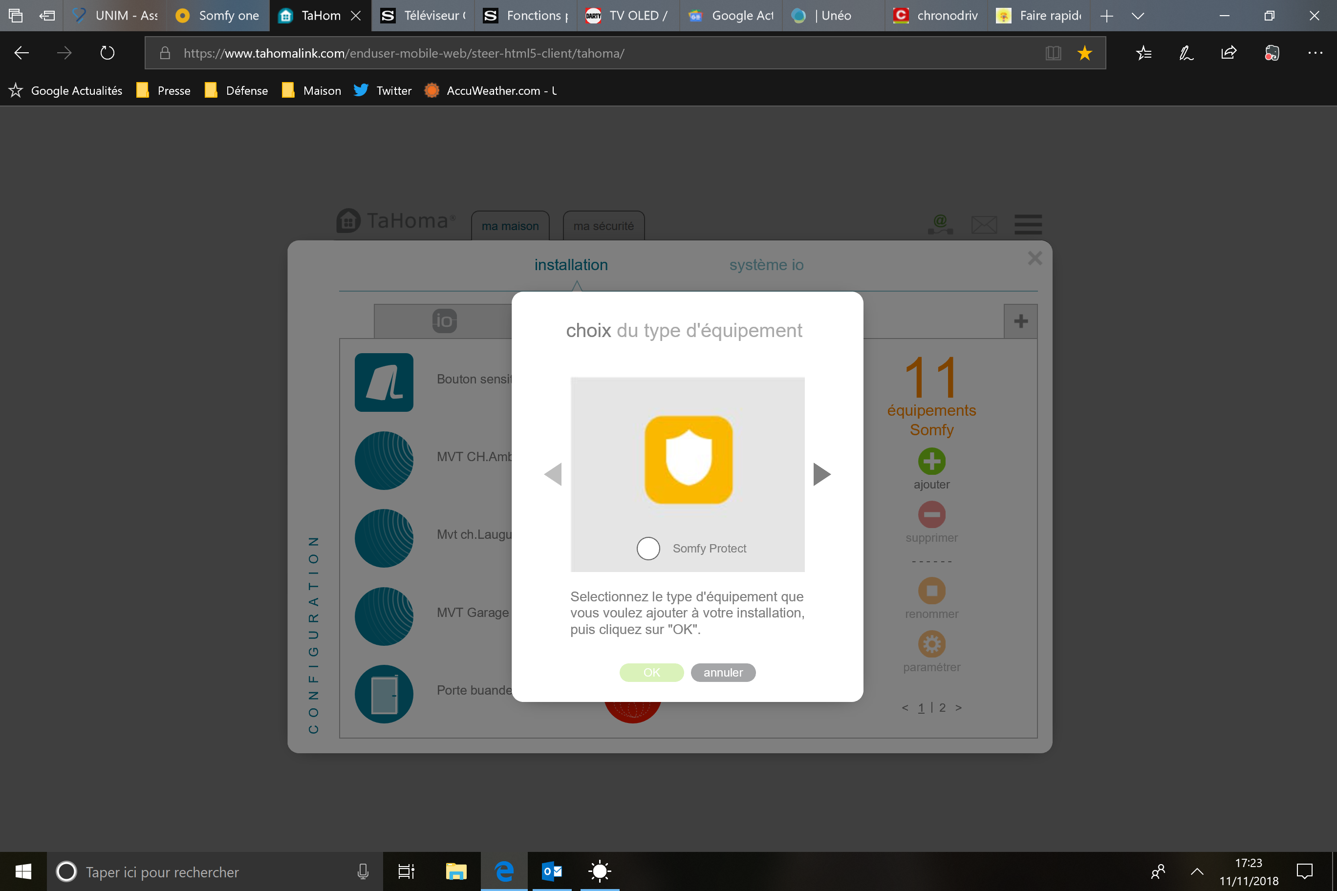 Somfy one non détectée Tahoma