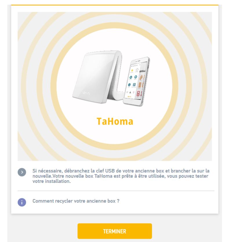 Bonjour, J'ai souscrit à l'offre de remplacement de ma Tahoma carrée par une Tahoma nouvelle génération. Le temps qu'elle me soit livrée j'ai utudié le PDF de la notice pour le transfert. Il est indiqué dans la rubrique branchement : ''Ne pas déconnecter votre ancienne box et si elle dispose d'une clef USB, la laisser branchée ". Je n'ai pas de clef USB branchée mais si j'ai bien compris il faut laisser brancher l'ancienne box. Ma question : après avoir fait les manœuvres décrites dans la notice à quel moment exact faut-il débrancher