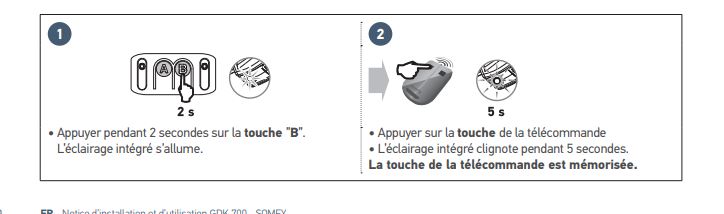 Je cherche à appairer ma motorisation de garage GDK 700 sur mon Visiophone V500. Dans la marche à suivre, il parle de bouton PROG mais je n'ai pas ce bouton sur mon GDK 700 ni sur ma télécommande (Keypop 2 RTS)