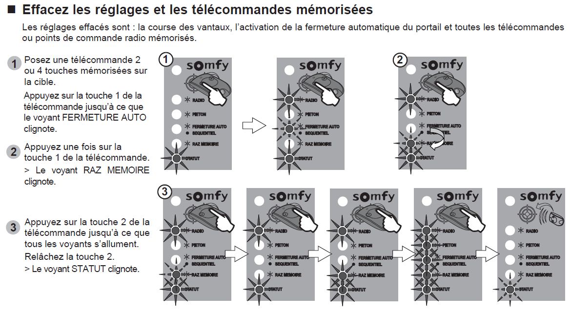 J ai fais un RAZ et le moteur a recalculer la courses des vantaux mais n a pas annule les frequences enregistrees sur cette telecommande.
