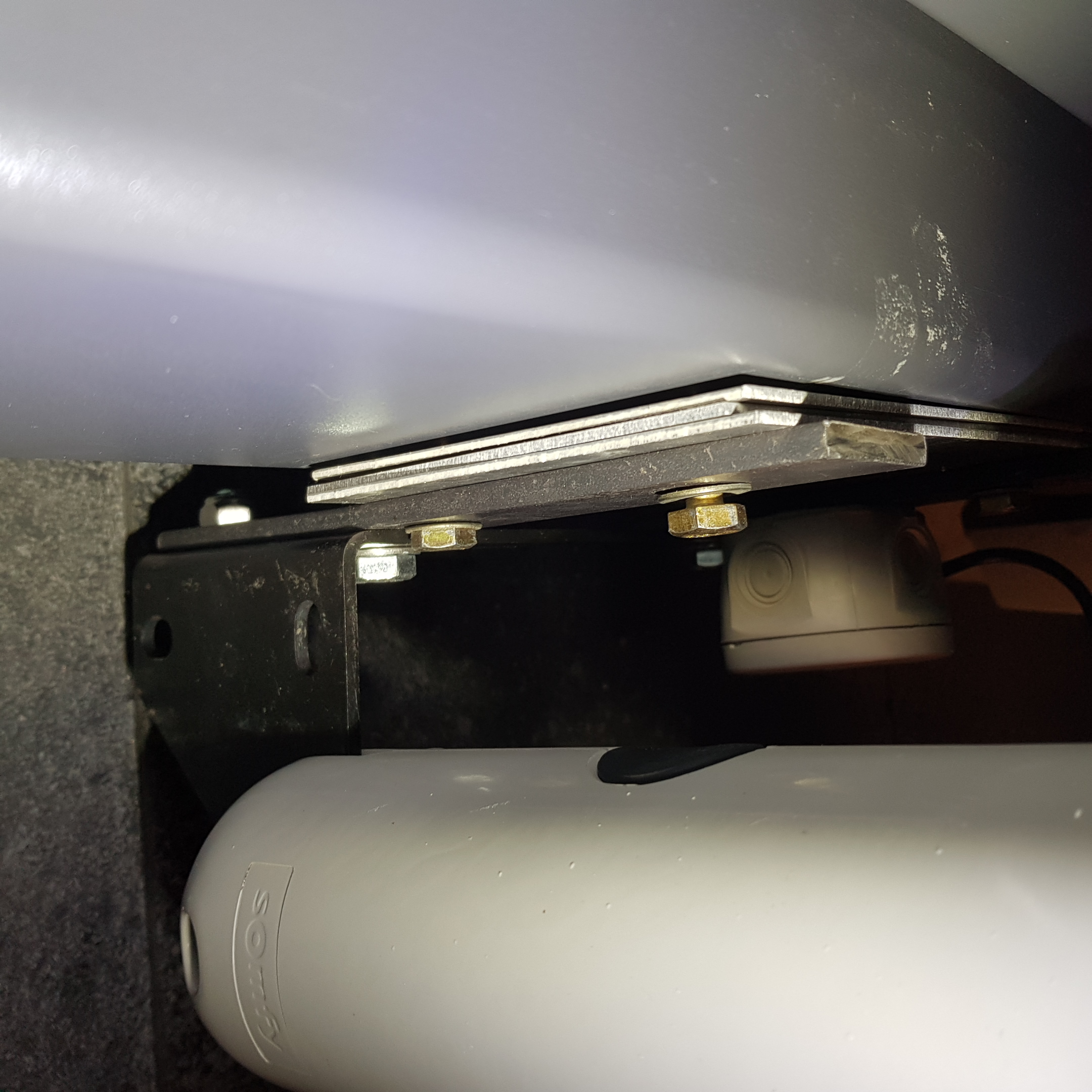 Par contre, je vais devoir renforcer mes platines car elles se plient légèrement lorsque le portail vient se bloquer contre la buté au sol.