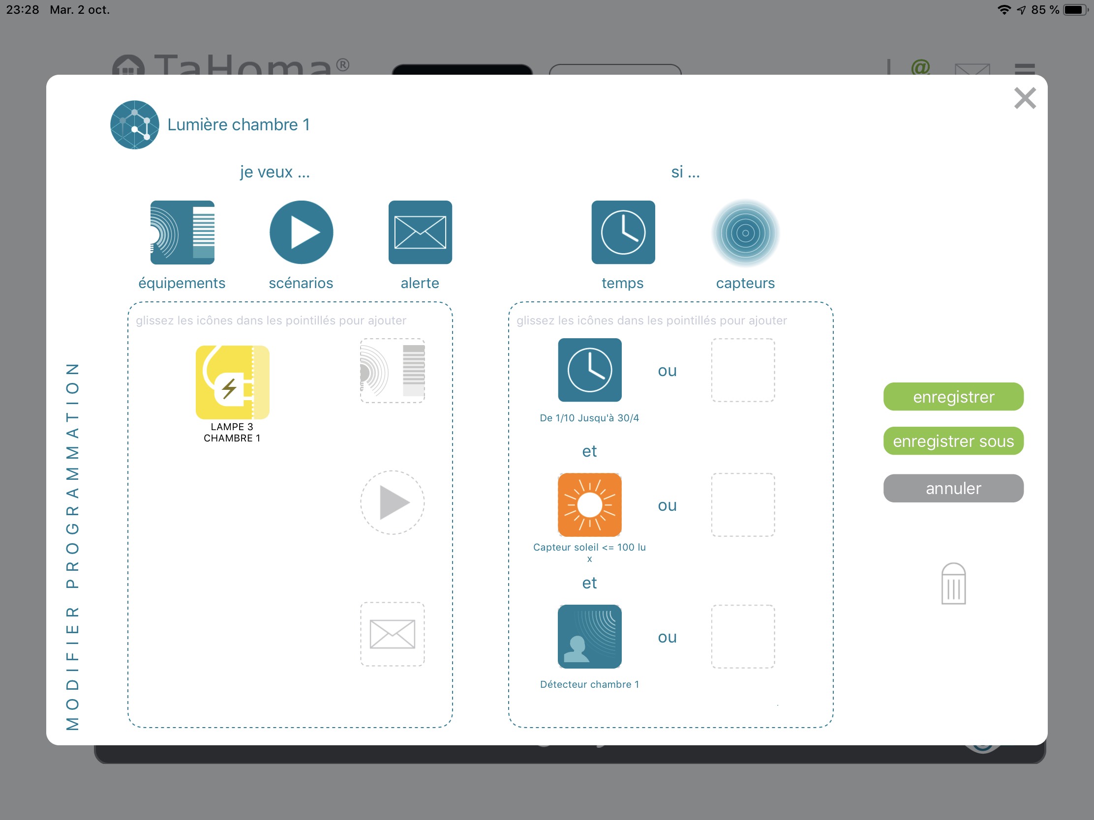 Par contre en ce qui me concerne, c'est sur l'application Android qu'il y a le bug: la condition de temps est grisée alors qu'on se trouve dans la plage souhaitée. Sur l'application PC la condition de temps est bien en vert.
