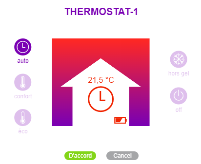 Par contre avec cela 2401293 vous pouvez normalement. Vous pouvez envoyer les modes Confort, Eco, Hors Gel et Off directement par Internet ou programmer les modes Confort et