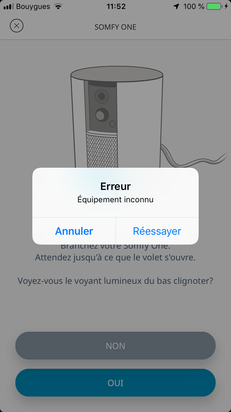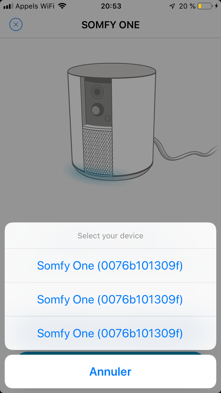 Je viens d'acheter sur votre site une Somfy One+ , je suis sous iOS. j'ai un messages avec 3 fois le même menu de sélection :