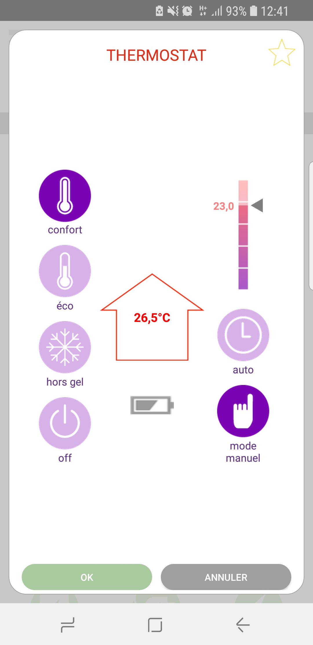 J'ai donc bien la même température entre l'affichage sur le thermostat et les remontées de Tahoma.