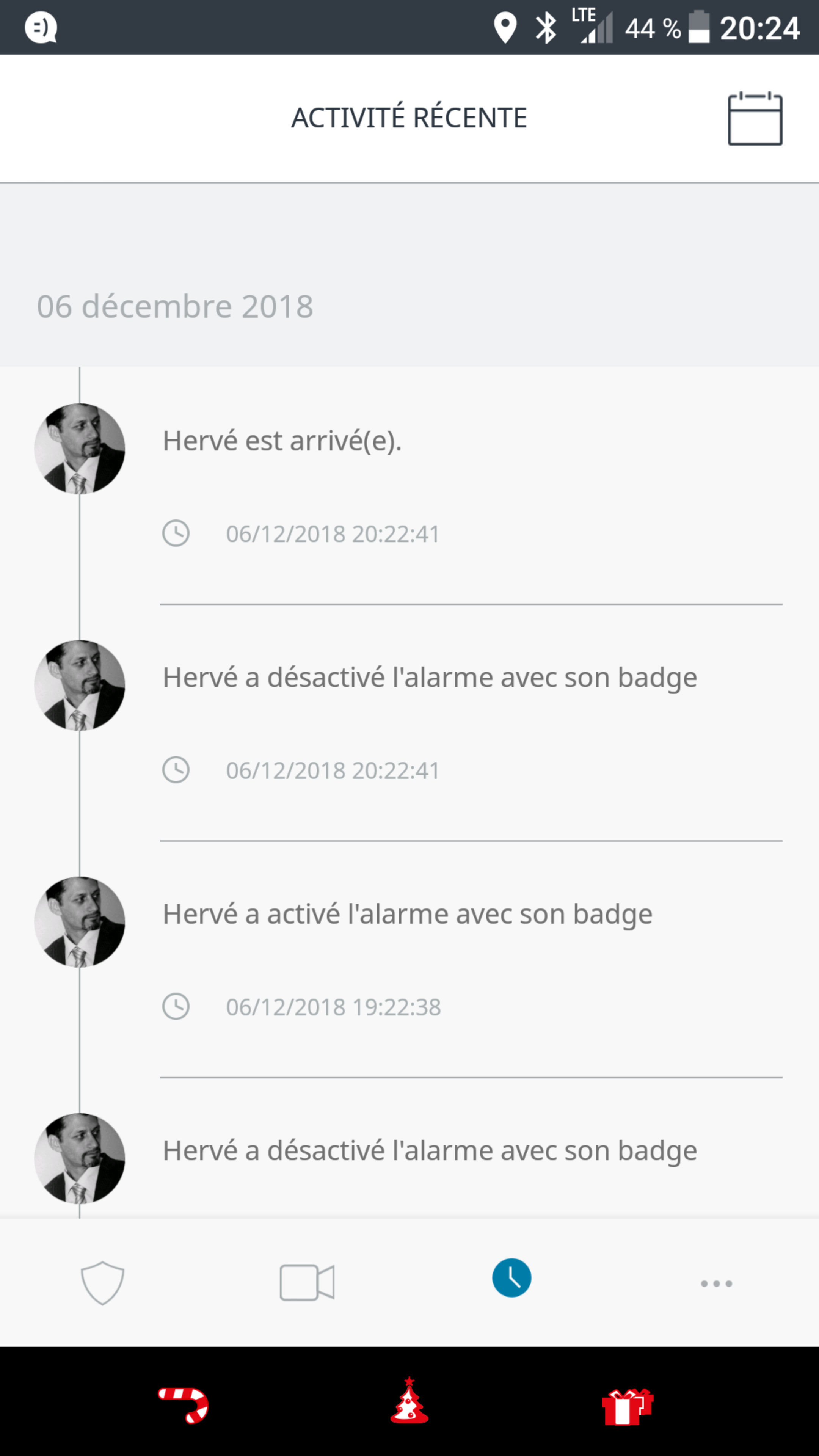Ah pardon excusez-moi je n'avais pas compris je suis donc rentré ce soir l'alarme s'est éteinte grâce à la détection de mon badge puis je l'ai laissée sonner et je l'ai éteinte ensuite avec mon badge l'historique ne donne rien puisque pour l'historique l'alarme s'est arrêtée