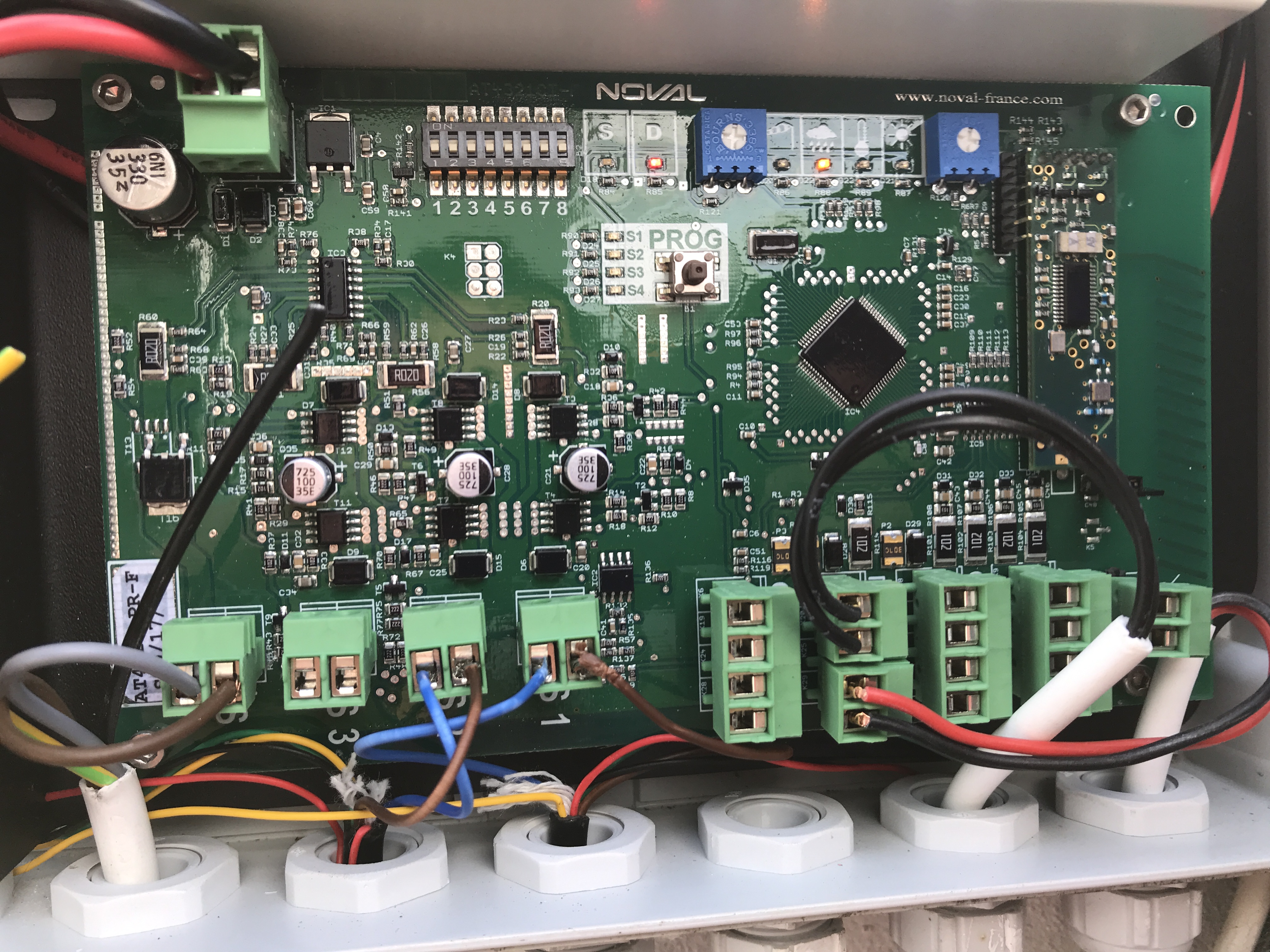 Il semblerait que votre Récepteur soit un boîtier conçu par la société NOVAL et non Somfy. Pourriez-vous me transmettre une photographie de l'intérieur de ce boîtier pour identifier s'il n'y a pas un schéma de câblage d'une antenne radio ?