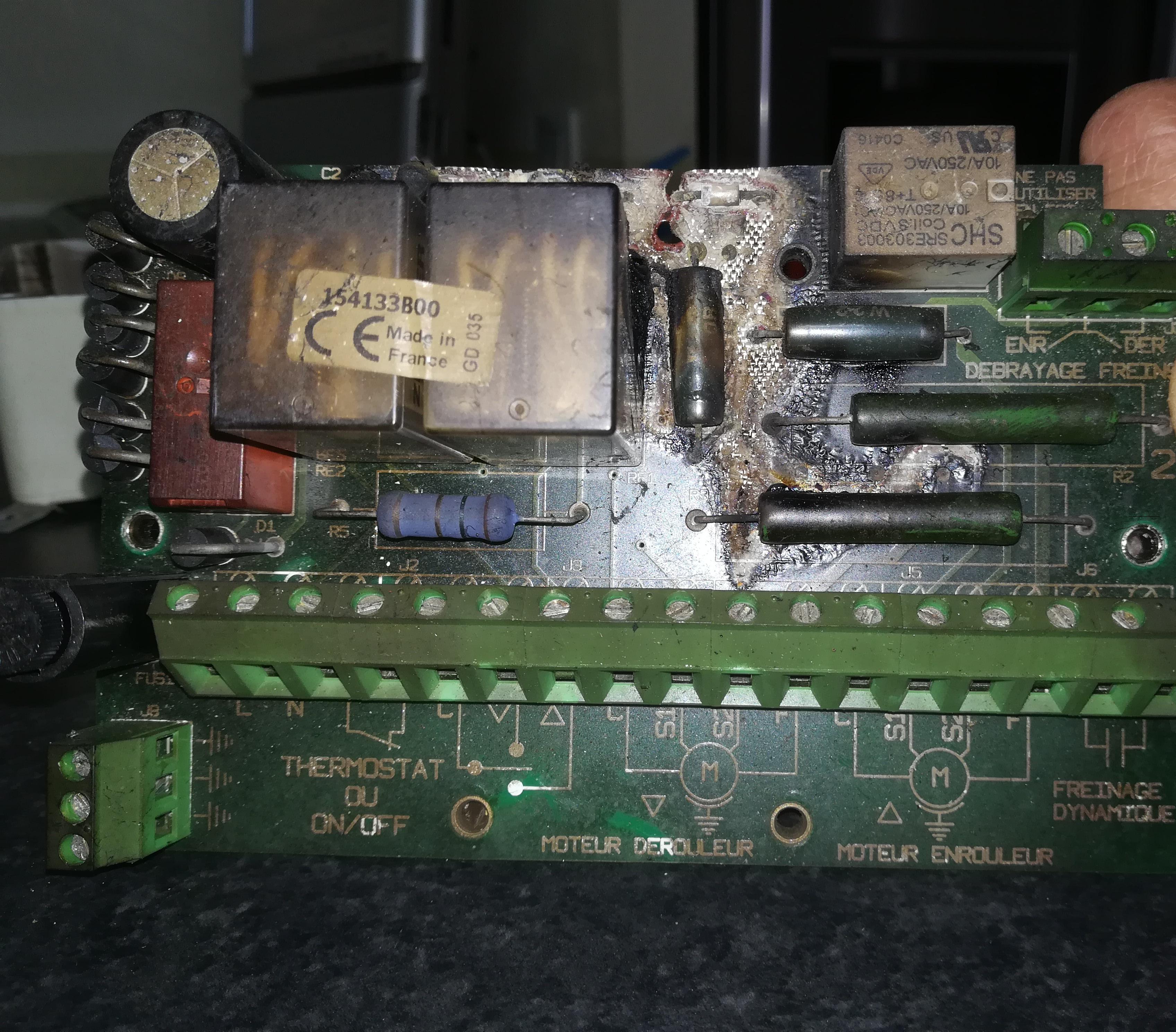 J'ai un store de toit de véranda piloté par un boitier BCV 801 qui ne bouge plus ; les contacteurs réagissent à la télécommande (j’ai changé la pile) ; les moteurs réagissent quand je les branche manuellement ; mais aucune réaction quand ils sont reliés au boitier ; que proposez-vous ?
