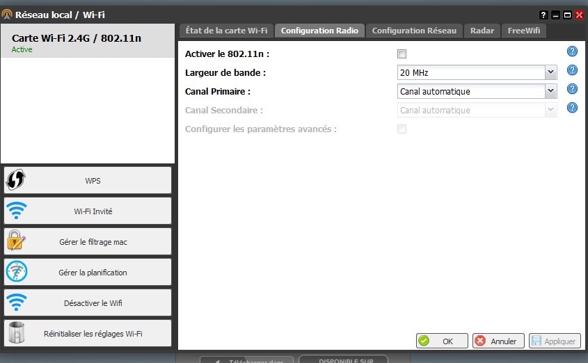 Bonsoir thomas merci pour votre réponse j'ai redecocher la case 802.11 N et en redemarant la box cette case reste décochée donc un problème de réglé.